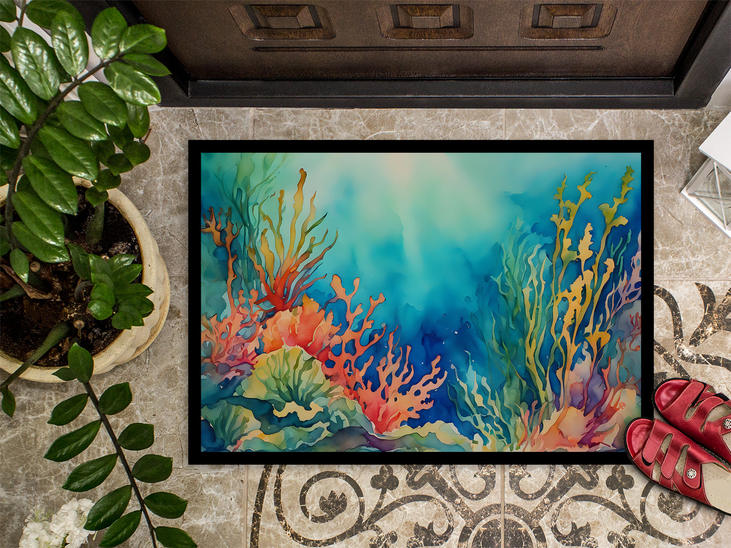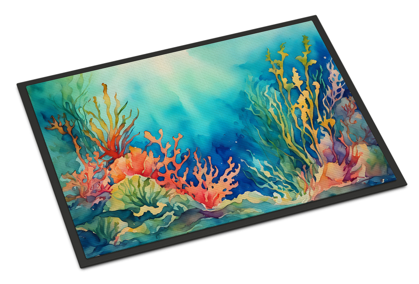Doormat featuring breed specific Seaweed artwork. Welcome your guests in style with our Artwork Door Mat, designed to withstand almost any weather condition. This mat, measuring approximately 24 by 36 inches, is held together by durable black binding tape. Its top layer, composed of polyester felt, is dyed with the eye-catching image you see on the mat. A few layers below provide the mat with stability, while its rubber bottom is stamped to help prevent slipping and ensures safety. Our mat works wonderfully as both an indoor or outdoor door mat. For cleaning, simply hose it off with water or use a power washer - no need for any cleaner that produces suds. Avoid scrubbing with a brush, instead, opt for the vacuum on floor setting. Designed manufactured and printed in the USA, this mat is a perfect addition to your porch, outdoor kitchen, entryway, or any indoor space. Its unique design makes it a charming decorative rug that greets your guests and adds a stylish touch to your home decor.