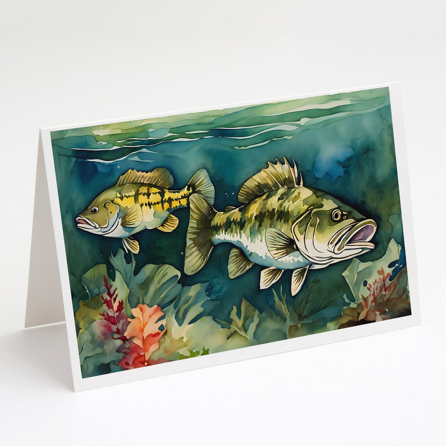 Greeting Cards Pack of 8 featuring breed specific Smallmouth Bass artwork. Celebrate special moments with Caroline's Treasures Printed Greeting Card Pack. This pack includes eight beautifully folded 5x7 cards, accompanied by eight matching white envelopes. With blank interiors, these cards provide ample space for your personalized messages and heartfelt holiday greetings. Each card features captivating full-color artwork, meticulously printed in our facility on high-quality 80 lb cover stock or 216 GSM. The super smooth finish of the white cards enhances the visual impact of the artwork, creating a truly stunning presentation. Designed by our talented in-house artists or licensed artists, the artwork on these cards showcases their creativity and attention to detail. From vibrant illustrations to captivating designs, each card tells its own unique story. Whether it's for birthdays, anniversaries, holidays, or any special occasion, Caroline's Treasures Greeting Card Pack is the perfect way to convey your heartfelt sentiments. Share joy, love, and warm wishes with these exquisite cards and make every moment unforgettable.