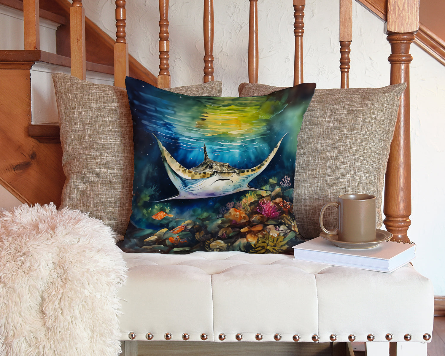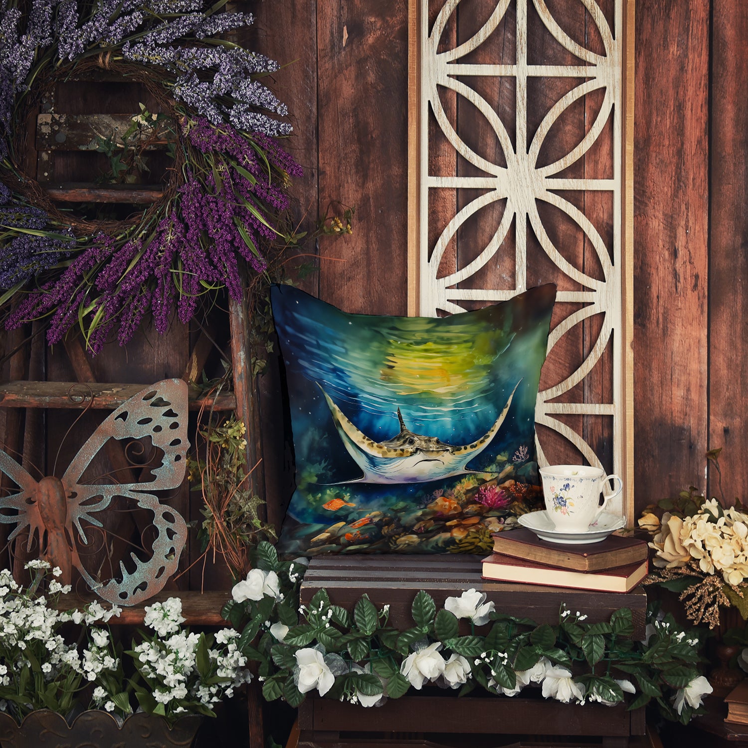 Throw Pillow featuring breed specific Sting Ray artwork. Add a touch of vibrancy and comfort to your outdoor seating with Caroline's Treasures Fabric Decorative Pillow. Measuring approximately 14 inches by 14 inches, this outdoor pillow is crafted to elevate the appeal of your patio furniture, infusing it with vivid color and artistic flair. The pillow includes a 100% Polyester Fabric sham filled with a quality pillow form to provide superior comfort. Innovatively made from our brand new material, specifically woven for its water resistance, this pillow is designed for durability. The soft canvas fabric offers versatility in use, fit for your indoor couch or your outdoor patio, porch, or veranda. The fabric is dyed with colorfast dyes built for resilience against weather conditions, ensuring the pillow retains its beauty over time. Constructed by sewing three fabric pieces to create a sham, the polyester insert is then nestled inside to form the pillow, resulting in an overstuffed pillow that maintains its shape. Both the sham and the pillow insert are proudly made in the United States. As the pillows are handcrafted, there may be minor variations in size, further enhancing their unique charm. Experience comfort in style with Caroline's Treasures Fabric Decorative Pillow.