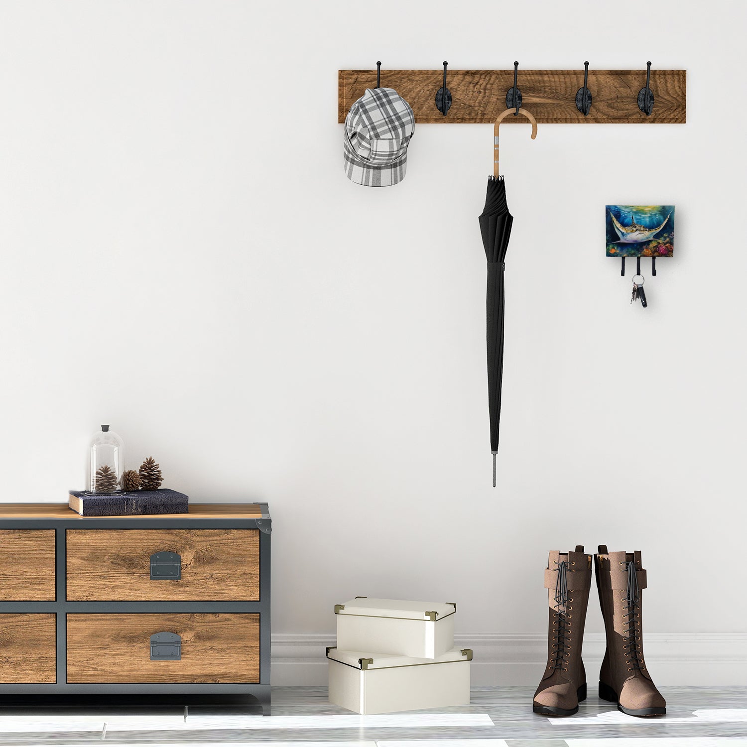Leash or Key Holder featuring breed specific Sting Ray artwork. Transform your home or office's organization with the Caroline's Treasures Triple Leash or Key Holder. Offering versatility and style, this triple hook holder is perfect for holding keys, leashes, or just about any other small items you need to keep at hand. Crafted with a hardboard tile mounted to a metal rectangle, this holder's structure speaks of durability and reliability. Each hook hangs down about 2.5 inches from the base, providing ample space for hanging your essentials. Despite its robustness, this triple hook holder remains simple to install. It comes with a 1.5-inch long hanger attached to the metal plate, ensuring easy installation with a screw or paneling nail. This holder, measuring 6 x 2 x 9 inches and weighing only 1 lb, is a compact and lightweight solution to your storage needs. Ideal for home or office use, the Caroline's Treasures Triple Leash or Key Holder enhances organization while adding a touch of sophistication to your space.