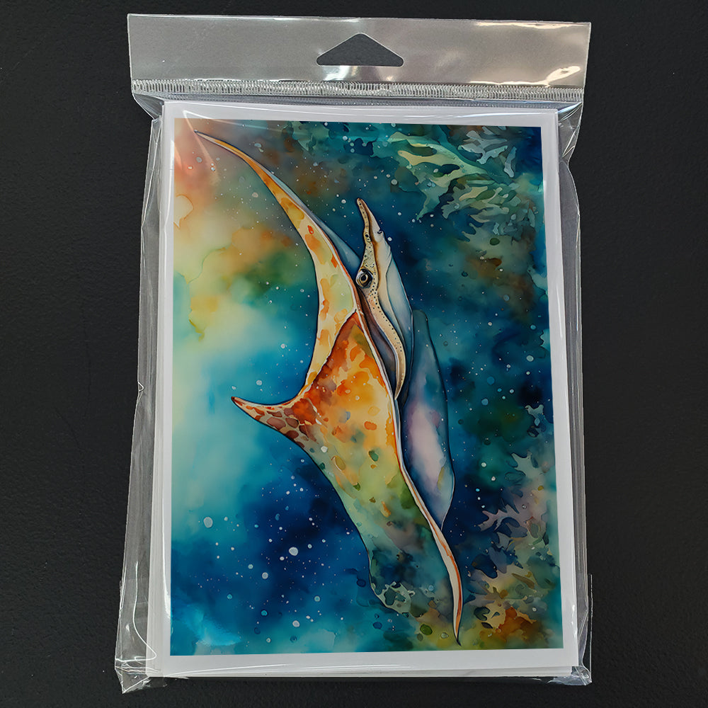 Greeting Cards Pack of 8 featuring breed specific Sting Ray artwork. Celebrate special moments with Caroline's Treasures Printed Greeting Card Pack. This pack includes eight beautifully folded 5x7 cards, accompanied by eight matching white envelopes. With blank interiors, these cards provide ample space for your personalized messages and heartfelt holiday greetings. Each card features captivating full-color artwork, meticulously printed in our facility on high-quality 80 lb cover stock or 216 GSM. The super smooth finish of the white cards enhances the visual impact of the artwork, creating a truly stunning presentation. Designed by our talented in-house artists or licensed artists, the artwork on these cards showcases their creativity and attention to detail. From vibrant illustrations to captivating designs, each card tells its own unique story. Whether it's for birthdays, anniversaries, holidays, or any special occasion, Caroline's Treasures Greeting Card Pack is the perfect way to convey your heartfelt sentiments. Share joy, love, and warm wishes with these exquisite cards and make every moment unforgettable.