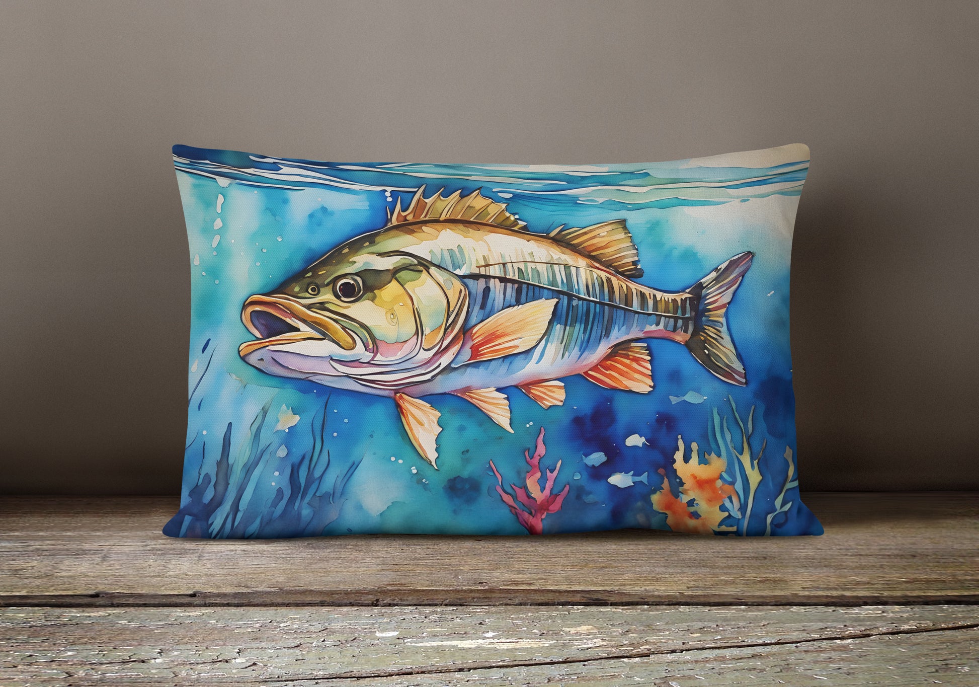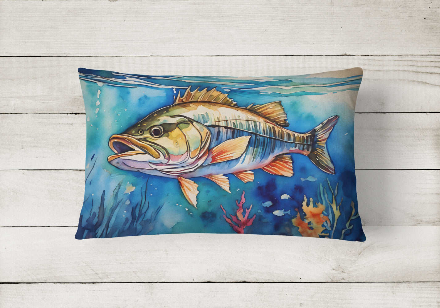 Throw Pillow featuring breed specific Striped Bass artwork. Embrace the fusion of comfort and style with Caroline's Treasures Fabric Decorative Pillow. This 12x16 inch outdoor pillow is designed to complement your patio furniture, adding a splash of color and artistry to your outdoor setting. Constructed with a 100% Polyester Fabric pillow sham filled with a plush pillow form, this cushion is as comfortable as it is durable. Our outdoor pillow utilizes a novel fabric, meticulously woven for enhanced water resistance. This soft canvas material is equally suited for your indoor couch as well as outdoor settings such as the patio, porch, or veranda. To ensure enduring vibrance, we employ colorfast dyes resistant to fading even when subjected to weather elements. The making of this pillow involves the delicate sewing together of three fabric pieces to create a sham, into which a polyester insert is carefully placed. The result is an overstuffed pillow that tenaciously holds its shape. With both the sham and the pillow insert crafted in the United States, these handmade pillows are a testament to superior local craftsmanship. Note that as these pillows are handmade, sizes may slightly vary, enhancing their unique appeal. Enjoy comfort in style with Caroline's Treasures Fabric Decorative Pillow.