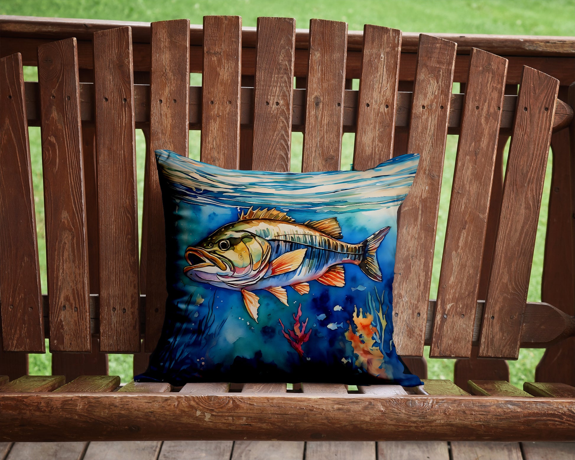 Throw Pillow featuring breed specific Striped Bass artwork. Add a touch of vibrancy and comfort to your outdoor seating with Caroline's Treasures Fabric Decorative Pillow. Measuring approximately 14 inches by 14 inches, this outdoor pillow is crafted to elevate the appeal of your patio furniture, infusing it with vivid color and artistic flair. The pillow includes a 100% Polyester Fabric sham filled with a quality pillow form to provide superior comfort. Innovatively made from our brand new material, specifically woven for its water resistance, this pillow is designed for durability. The soft canvas fabric offers versatility in use, fit for your indoor couch or your outdoor patio, porch, or veranda. The fabric is dyed with colorfast dyes built for resilience against weather conditions, ensuring the pillow retains its beauty over time. Constructed by sewing three fabric pieces to create a sham, the polyester insert is then nestled inside to form the pillow, resulting in an overstuffed pillow that maintains its shape. Both the sham and the pillow insert are proudly made in the United States. As the pillows are handcrafted, there may be minor variations in size, further enhancing their unique charm. Experience comfort in style with Caroline's Treasures Fabric Decorative Pillow.
