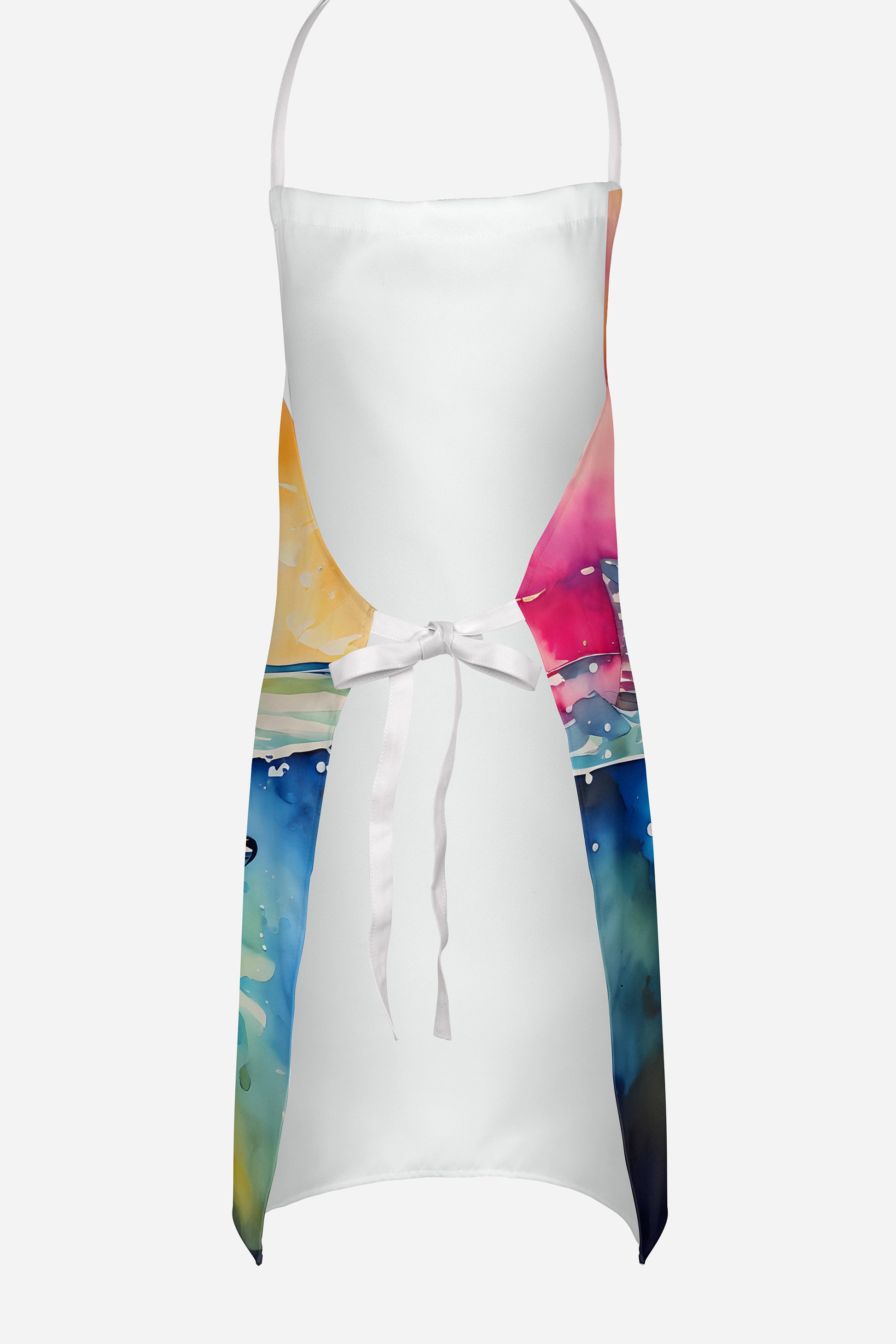 Apron featuring breed specific Striped Bass artwork. Elevate your cooking, baking, and grilling experiences with our versatile Kitchen or BBQ Apron. This Bib Style apron isn't just limited to culinary activities - it also serves as an excellent baking apron, artist apron, server apron, gardening apron, or even a dog grooming apron. The apron showcases vibrant full-color artwork contributed by one of our talented artists, bringing a dash of style to your daily tasks. With dimensions of approximately 27"W x 30"H, it provides ample coverage to protect your clothing from spills and splashes. Our apron is meticulously crafted from 100% Ultra Spun Polyester, known for its durability and lightweight nature. The apron comes with white tie straps, ensuring a comfortable and adjustable fit for all. It's a perfect choice for kitchen apron enthusiasts, whether you are a woman or a man. Designed for easy maintenance, this apron is fully machine washable. The quick-drying polyester material actively reduces staining, keeping your apron looking fresh and new for longer. Our beautifully designed apron isn't just a functional kitchen accessory - it's a fashion statement in the culinary world!