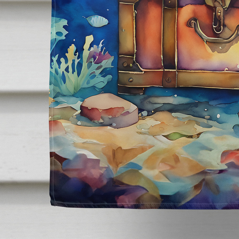 House Flag featuring breed specific Treasure Chest artwork. Presenting our Heavy Duty Polyester House Size Decorative Sleeve Pole Flag, a vibrant addition to enhance the aesthetic appeal of your home. This large decorative flag, measuring approximately 28 x 40 inches, offers ample coverage and visibility. Each flag is meticulously sewn and made individually, ensuring a unique piece that may slightly vary in size. It's a sleeve pole flag, designed to fit a standard decorative flag pole effortlessly. Please note that the flag pole and bracket are not included and should be purchased separately. What sets our flag apart is its dual-sided print. The design is mirrored on both sides of the fabric, allowing for uniform visibility regardless of the angle. Printed in full color, our flag showcases vibrant hues that truly stand out. To ensure lasting vibrancy and durability, the dyes are heat-set into the fabric. This ensures your flag remains bright and captivating through various weather conditions. Elevate the look of your home with our Heavy Duty Polyester House Size Decorative Sleeve Pole Flag!