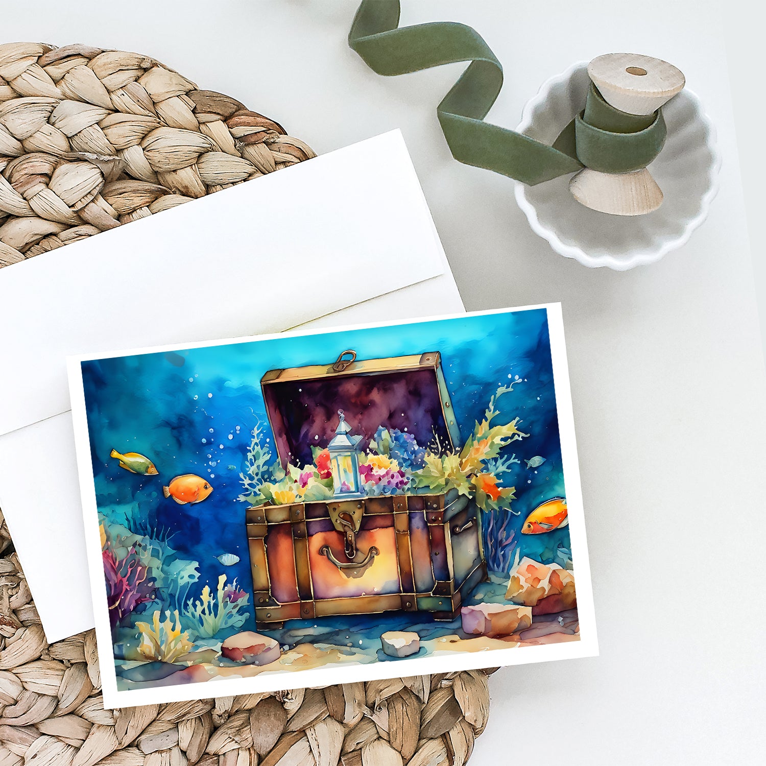 Greeting Cards Pack of 8 featuring breed specific Treasure Chest artwork. Celebrate special moments with Caroline's Treasures Printed Greeting Card Pack. This pack includes eight beautifully folded 5x7 cards, accompanied by eight matching white envelopes. With blank interiors, these cards provide ample space for your personalized messages and heartfelt holiday greetings. Each card features captivating full-color artwork, meticulously printed in our facility on high-quality 80 lb cover stock or 216 GSM. The super smooth finish of the white cards enhances the visual impact of the artwork, creating a truly stunning presentation. Designed by our talented in-house artists or licensed artists, the artwork on these cards showcases their creativity and attention to detail. From vibrant illustrations to captivating designs, each card tells its own unique story. Whether it's for birthdays, anniversaries, holidays, or any special occasion, Caroline's Treasures Greeting Card Pack is the perfect way to convey your heartfelt sentiments. Share joy, love, and warm wishes with these exquisite cards and make every moment unforgettable.