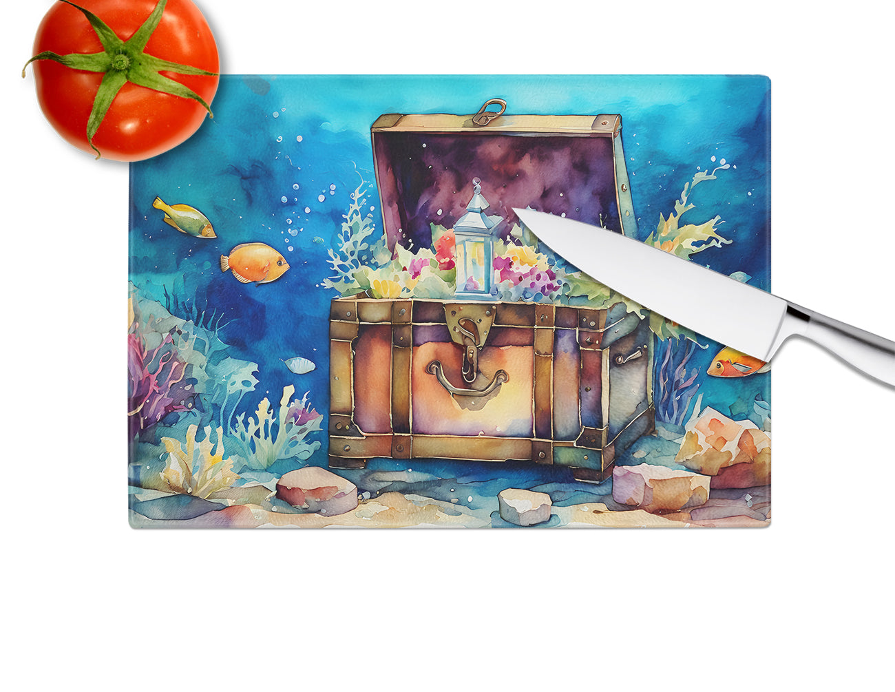 Glass Cutting Board featuring breed specific Treasure Chest artwork. Introduce your kitchen to the vibrant, large Decorative Glass Cutting Board from Caroline's Treasures. Crafted from resilient tempered glass, this board is not only a utilitarian necessity but also a colorful art piece. With its generous dimensions of 15 inches in height and 12 inches in length, it offers ample space for all your cutting needs. Every piece showcases captivating artwork from distinguished artists, bringing an aesthetic edge to your kitchen. Beyond its attractive design, this cutting board ensures your countertop stays pristine and unscathed, owing to its heat-resistant properties. Engineered with user convenience in mind, it features non-skid feet for stability, and rounded corners for additional safety. Its robust construction renders it virtually unbreakable, guaranteeing longevity. The board comes with protective feet bumpers, maintaining its position during use. This product is recommended to be hand washed only. Proudly printed and assembled in the United States, this cutting board exemplifies superior craftsmanship. With Caroline's Treasures' Decorative Glass Cutting Board, you're investing in a blend of functionality and artistic flair.