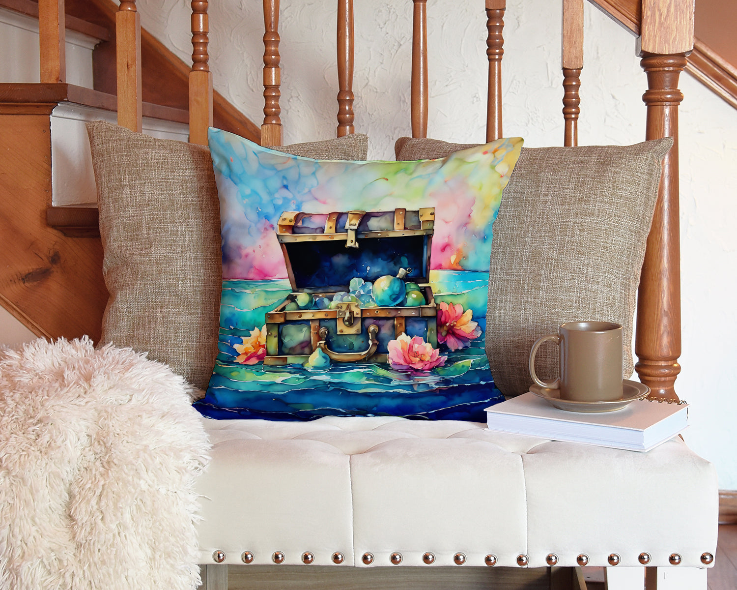 Throw Pillow featuring breed specific Treasure Chest artwork. Add a touch of vibrancy and comfort to your outdoor seating with Caroline's Treasures Fabric Decorative Pillow. Measuring approximately 14 inches by 14 inches, this outdoor pillow is crafted to elevate the appeal of your patio furniture, infusing it with vivid color and artistic flair. The pillow includes a 100% Polyester Fabric sham filled with a quality pillow form to provide superior comfort. Innovatively made from our brand new material, specifically woven for its water resistance, this pillow is designed for durability. The soft canvas fabric offers versatility in use, fit for your indoor couch or your outdoor patio, porch, or veranda. The fabric is dyed with colorfast dyes built for resilience against weather conditions, ensuring the pillow retains its beauty over time. Constructed by sewing three fabric pieces to create a sham, the polyester insert is then nestled inside to form the pillow, resulting in an overstuffed pillow that maintains its shape. Both the sham and the pillow insert are proudly made in the United States. As the pillows are handcrafted, there may be minor variations in size, further enhancing their unique charm. Experience comfort in style with Caroline's Treasures Fabric Decorative Pillow.