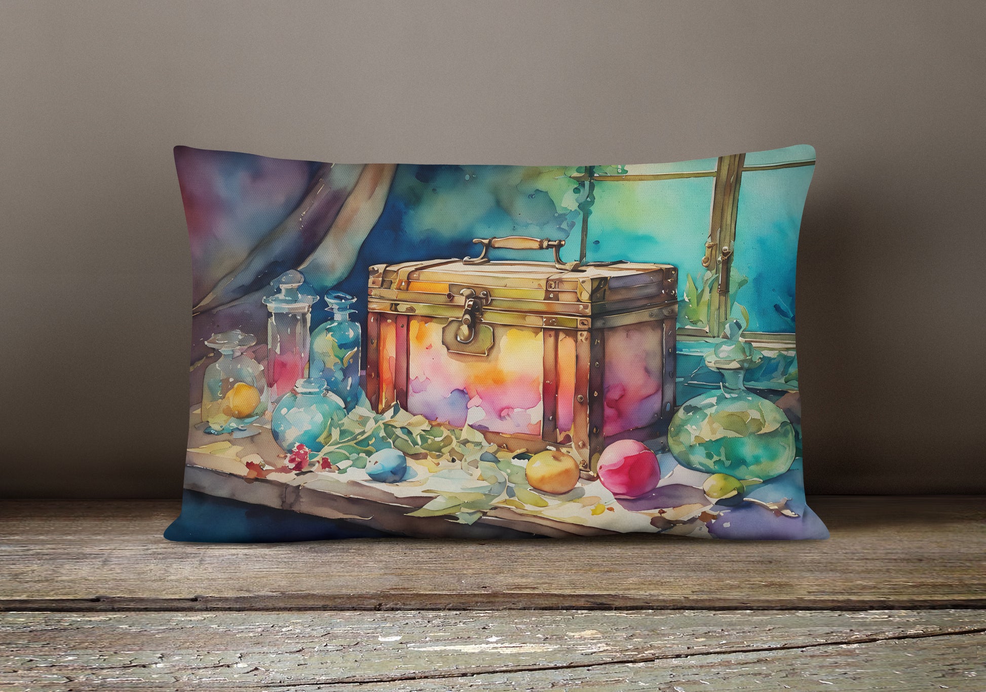 Throw Pillow featuring breed specific Treasure Chest artwork. Embrace the fusion of comfort and style with Caroline's Treasures Fabric Decorative Pillow. This 12x16 inch outdoor pillow is designed to complement your patio furniture, adding a splash of color and artistry to your outdoor setting. Constructed with a 100% Polyester Fabric pillow sham filled with a plush pillow form, this cushion is as comfortable as it is durable. Our outdoor pillow utilizes a novel fabric, meticulously woven for enhanced water resistance. This soft canvas material is equally suited for your indoor couch as well as outdoor settings such as the patio, porch, or veranda. To ensure enduring vibrance, we employ colorfast dyes resistant to fading even when subjected to weather elements. The making of this pillow involves the delicate sewing together of three fabric pieces to create a sham, into which a polyester insert is carefully placed. The result is an overstuffed pillow that tenaciously holds its shape. With both the sham and the pillow insert crafted in the United States, these handmade pillows are a testament to superior local craftsmanship. Note that as these pillows are handmade, sizes may slightly vary, enhancing their unique appeal. Enjoy comfort in style with Caroline's Treasures Fabric Decorative Pillow.