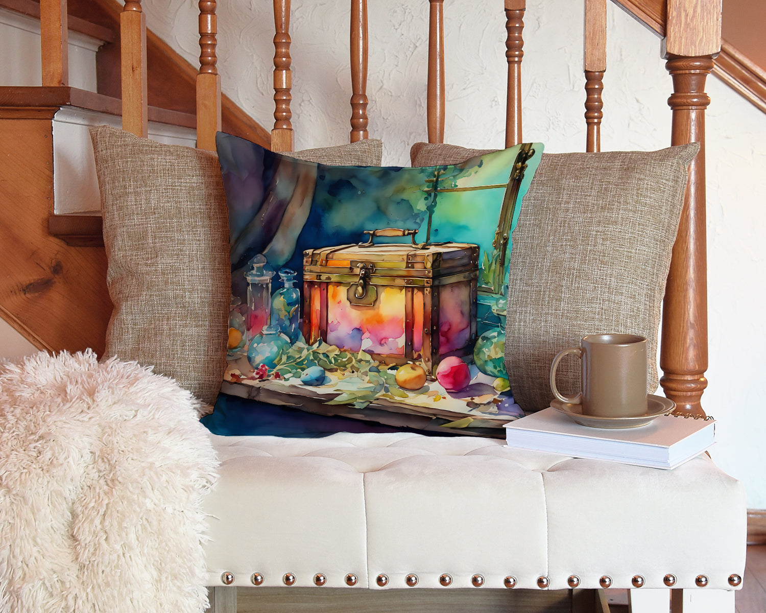 Throw Pillow featuring breed specific Treasure Chest artwork. Add a touch of vibrancy and comfort to your outdoor seating with Caroline's Treasures Fabric Decorative Pillow. Measuring approximately 14 inches by 14 inches, this outdoor pillow is crafted to elevate the appeal of your patio furniture, infusing it with vivid color and artistic flair. The pillow includes a 100% Polyester Fabric sham filled with a quality pillow form to provide superior comfort. Innovatively made from our brand new material, specifically woven for its water resistance, this pillow is designed for durability. The soft canvas fabric offers versatility in use, fit for your indoor couch or your outdoor patio, porch, or veranda. The fabric is dyed with colorfast dyes built for resilience against weather conditions, ensuring the pillow retains its beauty over time. Constructed by sewing three fabric pieces to create a sham, the polyester insert is then nestled inside to form the pillow, resulting in an overstuffed pillow that maintains its shape. Both the sham and the pillow insert are proudly made in the United States. As the pillows are handcrafted, there may be minor variations in size, further enhancing their unique charm. Experience comfort in style with Caroline's Treasures Fabric Decorative Pillow.