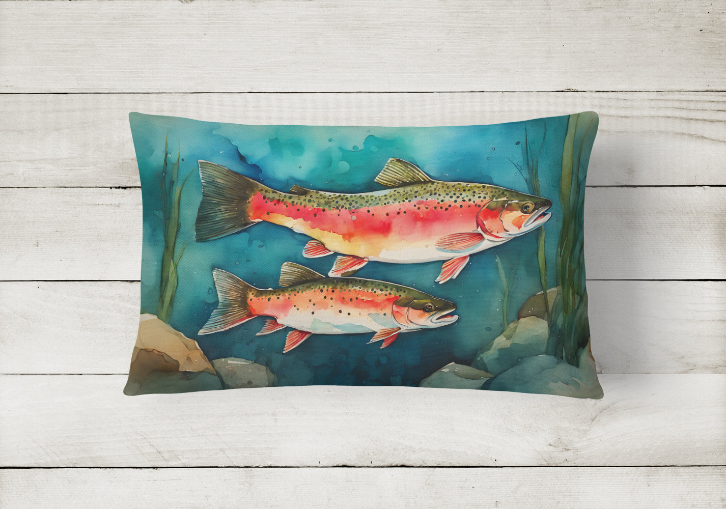 Throw Pillow featuring breed specific Trout artwork. Embrace the fusion of comfort and style with Caroline's Treasures Fabric Decorative Pillow. This 12x16 inch outdoor pillow is designed to complement your patio furniture, adding a splash of color and artistry to your outdoor setting. Constructed with a 100% Polyester Fabric pillow sham filled with a plush pillow form, this cushion is as comfortable as it is durable. Our outdoor pillow utilizes a novel fabric, meticulously woven for enhanced water resistance. This soft canvas material is equally suited for your indoor couch as well as outdoor settings such as the patio, porch, or veranda. To ensure enduring vibrance, we employ colorfast dyes resistant to fading even when subjected to weather elements. The making of this pillow involves the delicate sewing together of three fabric pieces to create a sham, into which a polyester insert is carefully placed. The result is an overstuffed pillow that tenaciously holds its shape. With both the sham and the pillow insert crafted in the United States, these handmade pillows are a testament to superior local craftsmanship. Note that as these pillows are handmade, sizes may slightly vary, enhancing their unique appeal. Enjoy comfort in style with Caroline's Treasures Fabric Decorative Pillow.