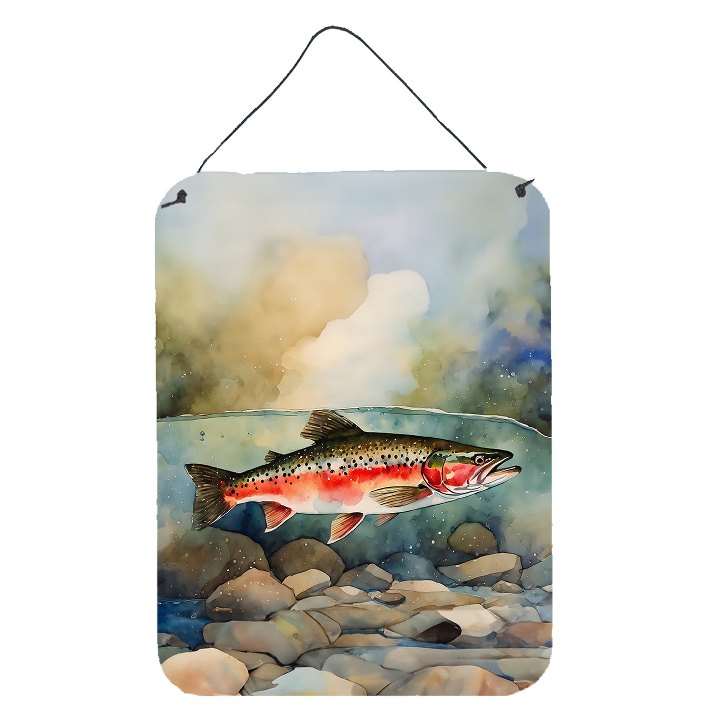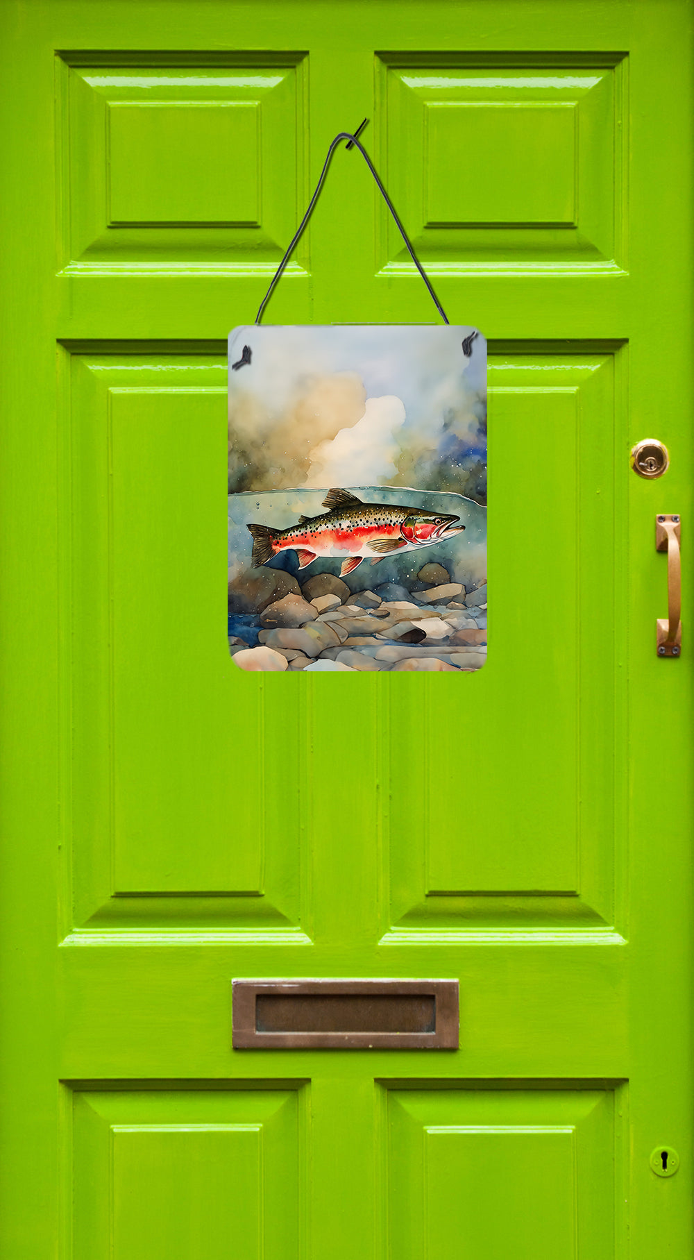 Wall or Door Hanging Prints featuring breed specific Trout artwork. Spruce up your space with our Indoor or Outdoor Aluminum Artwork Prints. Designed to brighten your kitchen, bathroom, office, or outdoor areas like patios and porches, these prints offer a unique way to decorate your home or workspace. Measuring 12 by 16 inches, the prints are vibrant, full color, and bring an element of artistry to any setting. What makes these prints special is their durability and resistance to the elements. If placed outside, they can withstand direct sunlight for a considerable time before showing signs of fading. Crafted from rust and fade-resistant aluminum, these prints are built to last and maintain their vibrant colors. Each print comes with a black hanging rope and rounded corners for safety. The back of the print showcases a brushed silver color, adding a touch of sophistication. The lightweight design allows easy hanging with virtually any nail or screw, making installation a breeze. Whether indoors or outdoors, these prints add a distinctive touch to any space.