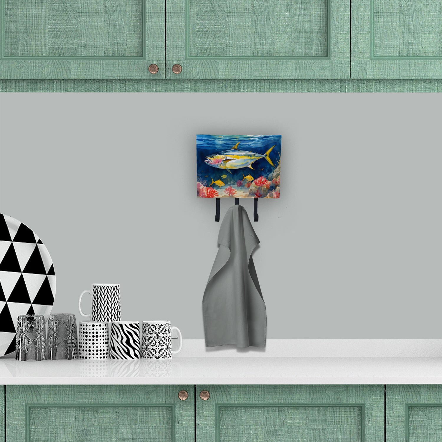 Leash or Key Holder featuring breed specific Yellowfin Tuna artwork. Transform your home or office's organization with the Caroline's Treasures Triple Leash or Key Holder. Offering versatility and style, this triple hook holder is perfect for holding keys, leashes, or just about any other small items you need to keep at hand. Crafted with a hardboard tile mounted to a metal rectangle, this holder's structure speaks of durability and reliability. Each hook hangs down about 2.5 inches from the base, providing ample space for hanging your essentials. Despite its robustness, this triple hook holder remains simple to install. It comes with a 1.5-inch long hanger attached to the metal plate, ensuring easy installation with a screw or paneling nail. This holder, measuring 6 x 2 x 9 inches and weighing only 1 lb, is a compact and lightweight solution to your storage needs. Ideal for home or office use, the Caroline's Treasures Triple Leash or Key Holder enhances organization while adding a touch of sophistication to your space.
