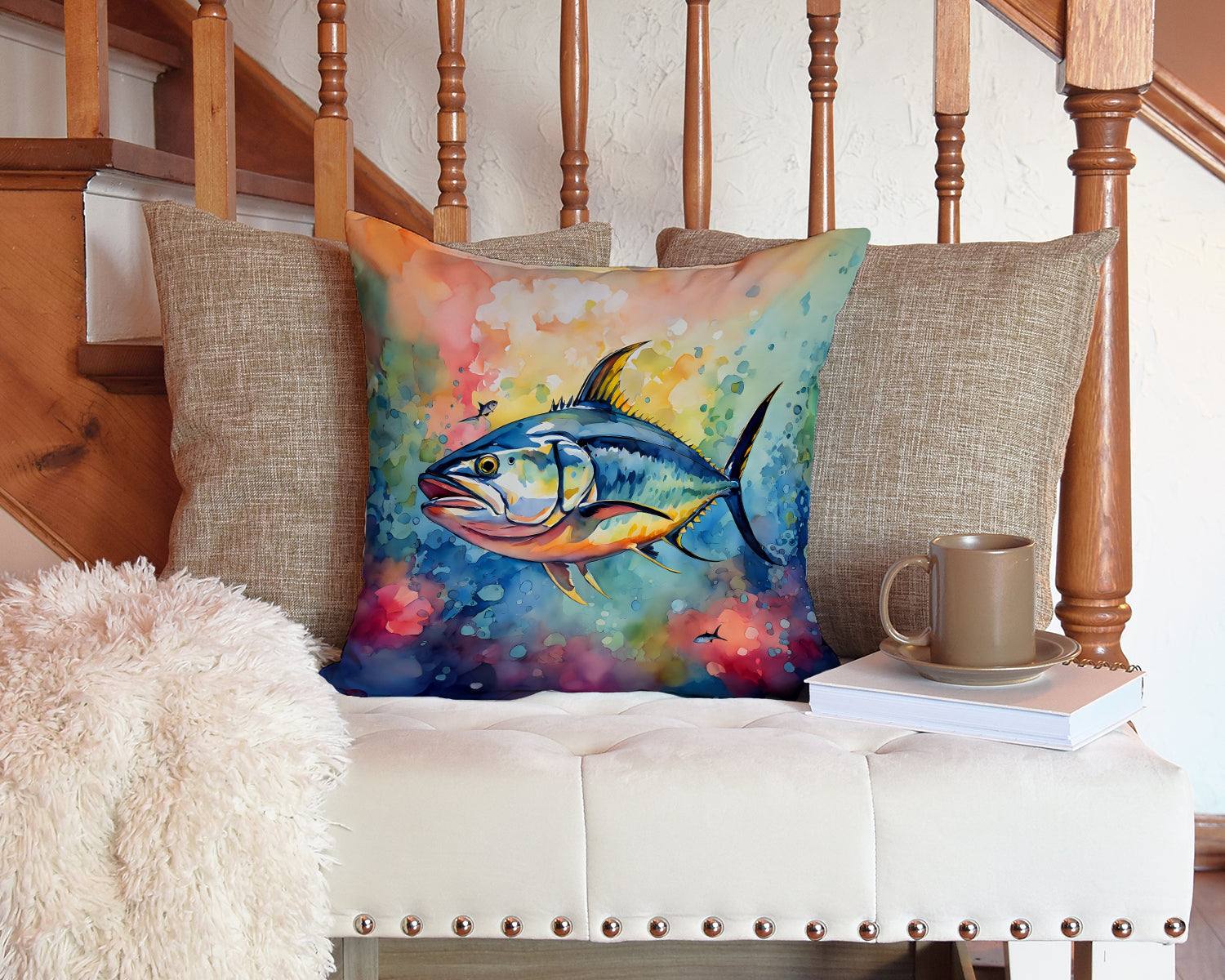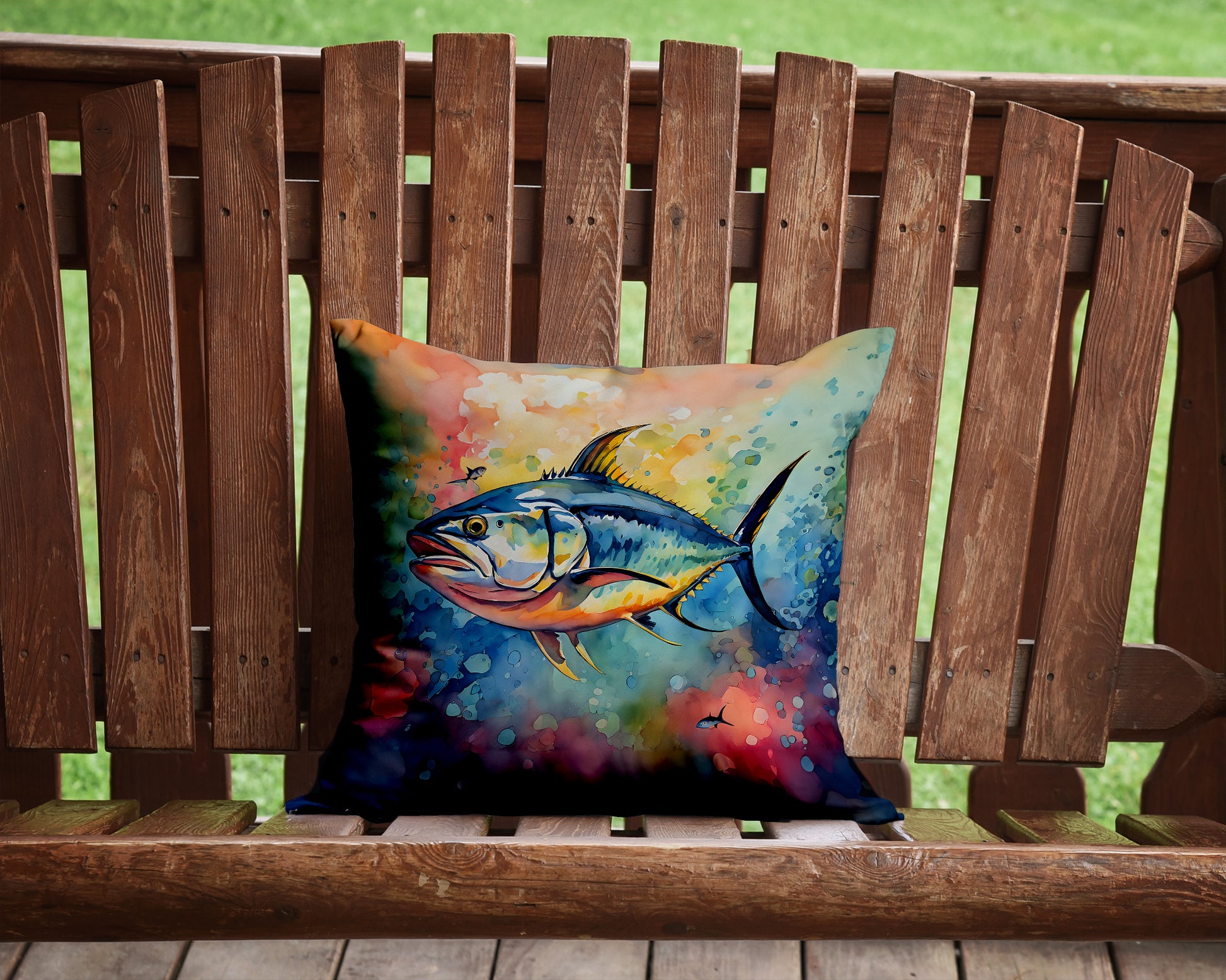 Throw Pillow featuring breed specific Yellowfin Tuna artwork. Add a touch of vibrancy and comfort to your outdoor seating with Caroline's Treasures Fabric Decorative Pillow. Measuring approximately 14 inches by 14 inches, this outdoor pillow is crafted to elevate the appeal of your patio furniture, infusing it with vivid color and artistic flair. The pillow includes a 100% Polyester Fabric sham filled with a quality pillow form to provide superior comfort. Innovatively made from our brand new material, specifically woven for its water resistance, this pillow is designed for durability. The soft canvas fabric offers versatility in use, fit for your indoor couch or your outdoor patio, porch, or veranda. The fabric is dyed with colorfast dyes built for resilience against weather conditions, ensuring the pillow retains its beauty over time. Constructed by sewing three fabric pieces to create a sham, the polyester insert is then nestled inside to form the pillow, resulting in an overstuffed pillow that maintains its shape. Both the sham and the pillow insert are proudly made in the United States. As the pillows are handcrafted, there may be minor variations in size, further enhancing their unique charm. Experience comfort in style with Caroline's Treasures Fabric Decorative Pillow.