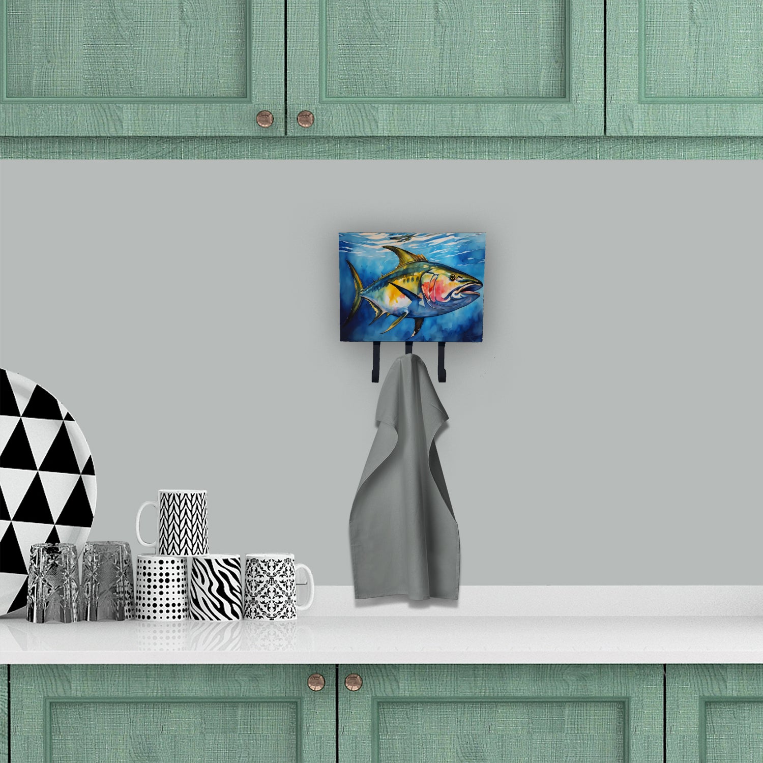Leash or Key Holder featuring breed specific Yellowfin Tuna artwork. Transform your home or office's organization with the Caroline's Treasures Triple Leash or Key Holder. Offering versatility and style, this triple hook holder is perfect for holding keys, leashes, or just about any other small items you need to keep at hand. Crafted with a hardboard tile mounted to a metal rectangle, this holder's structure speaks of durability and reliability. Each hook hangs down about 2.5 inches from the base, providing ample space for hanging your essentials. Despite its robustness, this triple hook holder remains simple to install. It comes with a 1.5-inch long hanger attached to the metal plate, ensuring easy installation with a screw or paneling nail. This holder, measuring 6 x 2 x 9 inches and weighing only 1 lb, is a compact and lightweight solution to your storage needs. Ideal for home or office use, the Caroline's Treasures Triple Leash or Key Holder enhances organization while adding a touch of sophistication to your space.