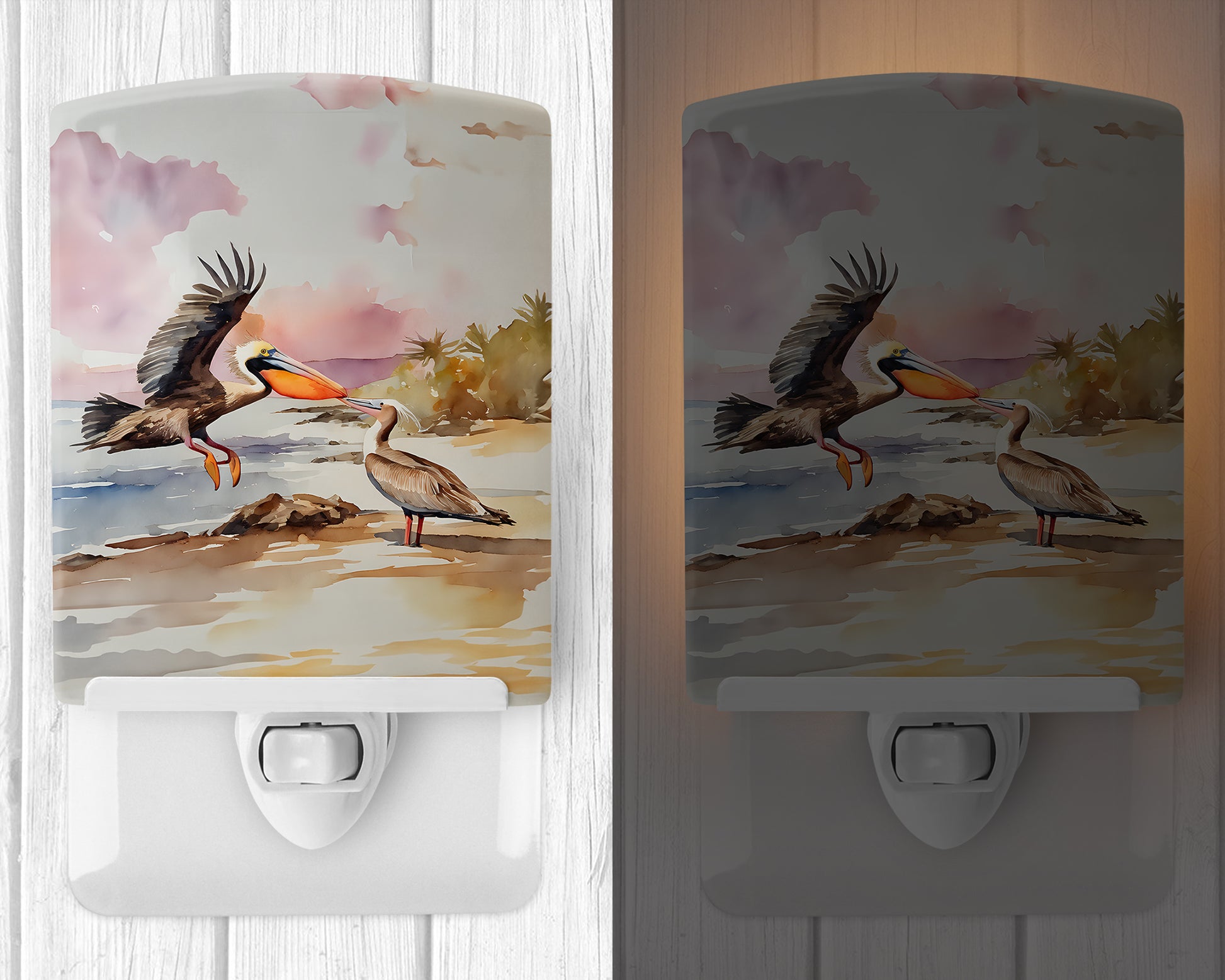 Ceramic Night Light featuring breed specific Pelican artwork. Introduce a splash of artistic flair and subtle illumination to your space with the Decorative Ceramic Night Light from Caroline's Treasures. Perfect for any room, this night light seamlessly blends functionality with an aesthetic appeal, offering a stylish solution to brighten up dark corners of your home or office. Boasting a six-inch high by four-inch wide ceramic tile at the front, it showcases vivid, full-color artwork from distinguished artists, transforming a simple utility into a vibrant art piece. The artwork is securely encased in a robust metal holder, ensuring durability and longevity. Two screws are provided to firmly affix the tile into the holder. The holder extends three inches deep, housing an included bulb that emits a soft, welcoming glow. This product meets all safety standards, as evidenced by its UL approval. Proudly made in the United States from imported components, this Decorative Ceramic Night Light is not just a functional device; it's a statement piece that enhances the ambiance of your surroundings.
