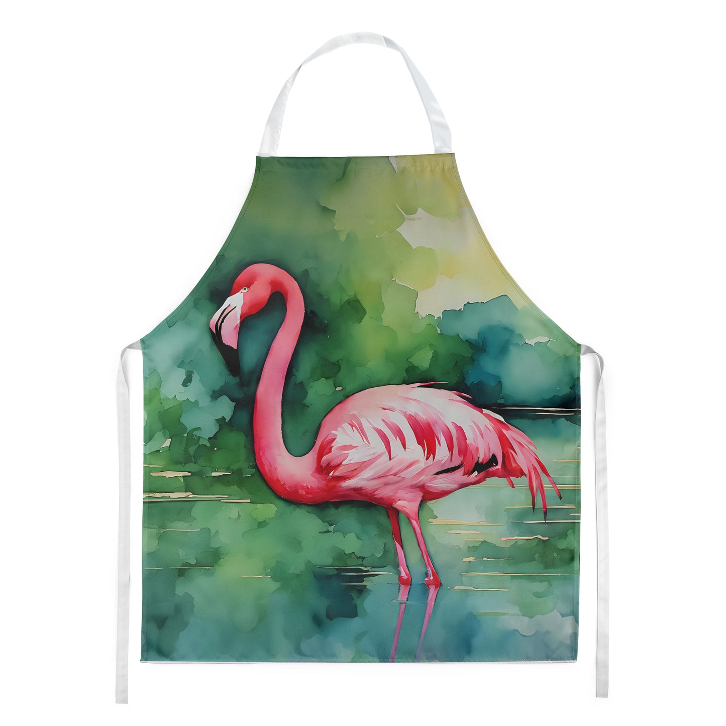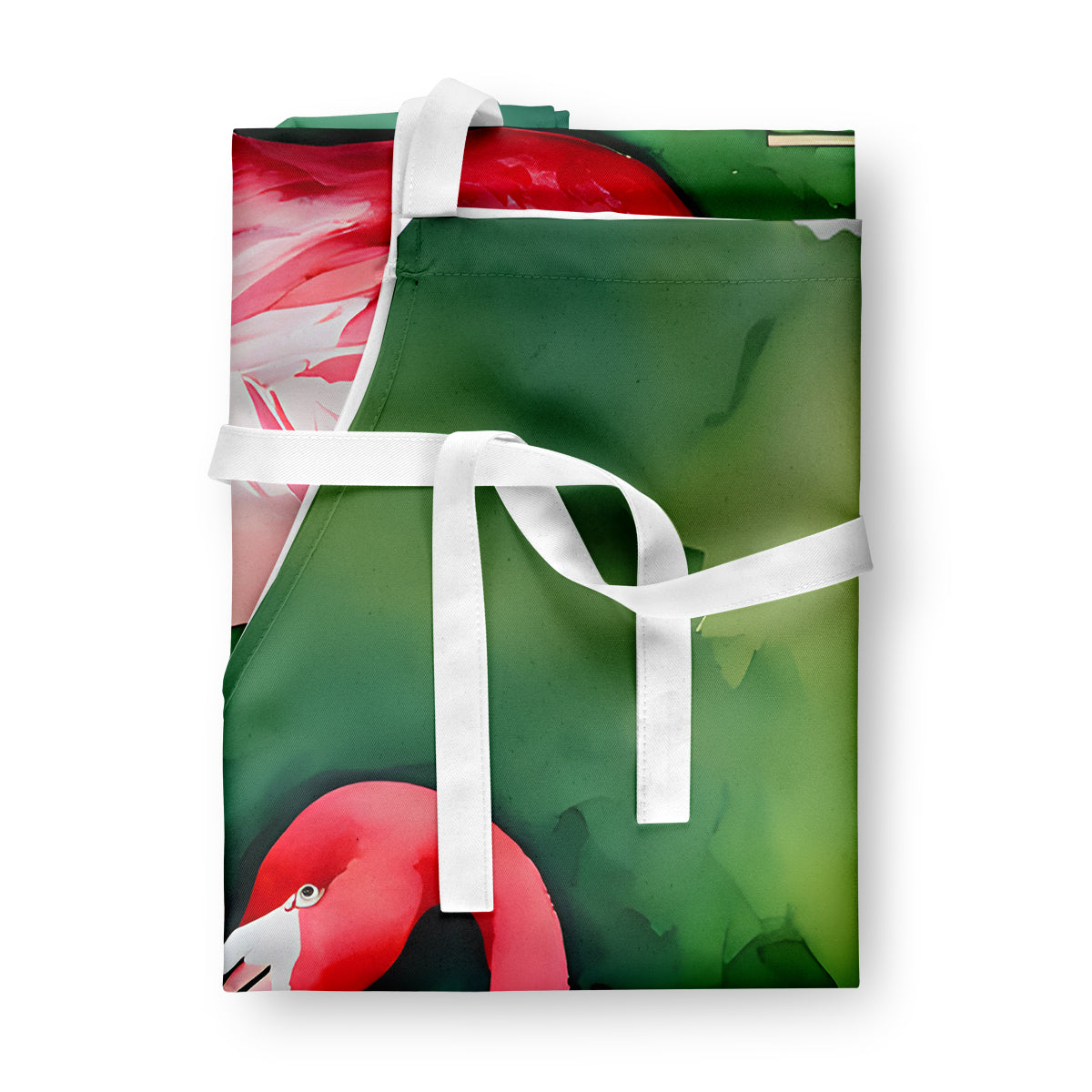 Apron featuring breed specific Flamingo artwork. Elevate your cooking, baking, and grilling experiences with our versatile Kitchen or BBQ Apron. This Bib Style apron isn't just limited to culinary activities - it also serves as an excellent baking apron, artist apron, server apron, gardening apron, or even a dog grooming apron. The apron showcases vibrant full-color artwork contributed by one of our talented artists, bringing a dash of style to your daily tasks. With dimensions of approximately 27"W x 30"H, it provides ample coverage to protect your clothing from spills and splashes. Our apron is meticulously crafted from 100% Ultra Spun Polyester, known for its durability and lightweight nature. The apron comes with white tie straps, ensuring a comfortable and adjustable fit for all. It's a perfect choice for kitchen apron enthusiasts, whether you are a woman or a man. Designed for easy maintenance, this apron is fully machine washable. The quick-drying polyester material actively reduces staining, keeping your apron looking fresh and new for longer. Our beautifully designed apron isn't just a functional kitchen accessory - it's a fashion statement in the culinary world!