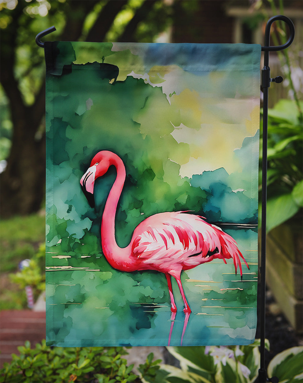 Garden Flag featuring breed specific Flamingo artwork. Enhance the beauty of your garden, patio, or yard with Caroline's Treasures Decorative Garden Flag, proudly made in the USA. Crafted from two pieces of thick, double-sided polyester fabric, this 2-ply garden flag is designed to withstand various weather conditions, making it water-resistant and weatherproof. Featuring correctly readable words on both sides, this garden flag offers a delightful visual experience from any angle. With its heavier weight, it stands out among other garden flags, ensuring stability and durability even in wind, rain, and snow. Measuring approximately 11 1/4 inches by 15 1/2 inches, this flag allows you to personalize your outdoor decor. It comes with a 1 1/2-inch sleeve sewn in, allowing easy attachment to any standard garden flag stand or garden size porch hanger (sold separately). Make a statement in your outdoor space with Caroline's Treasures Decorative Garden Flag, a vibrant and high-quality flag that adds color and personality to your surroundings. Proudly made in the USA, it's a symbol of quality craftsmanship and attention to detail.