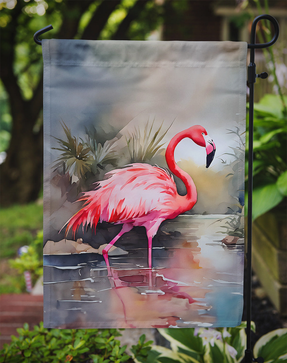 Garden Flag featuring breed specific Flamingo artwork. Enhance the beauty of your garden, patio, or yard with Caroline's Treasures Decorative Garden Flag, proudly made in the USA. Crafted from two pieces of thick, double-sided polyester fabric, this 2-ply garden flag is designed to withstand various weather conditions, making it water-resistant and weatherproof. Featuring correctly readable words on both sides, this garden flag offers a delightful visual experience from any angle. With its heavier weight, it stands out among other garden flags, ensuring stability and durability even in wind, rain, and snow. Measuring approximately 11 1/4 inches by 15 1/2 inches, this flag allows you to personalize your outdoor decor. It comes with a 1 1/2-inch sleeve sewn in, allowing easy attachment to any standard garden flag stand or garden size porch hanger (sold separately). Make a statement in your outdoor space with Caroline's Treasures Decorative Garden Flag, a vibrant and high-quality flag that adds color and personality to your surroundings. Proudly made in the USA, it's a symbol of quality craftsmanship and attention to detail.