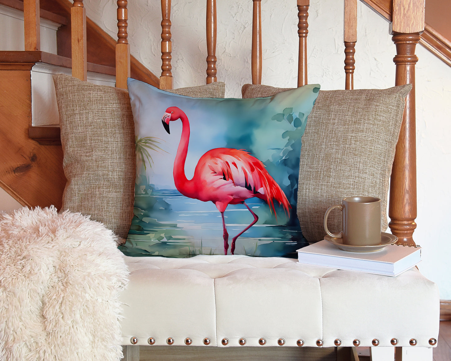 Throw Pillow featuring breed specific Flamingo artwork. Add a touch of vibrancy and comfort to your outdoor seating with Caroline's Treasures Fabric Decorative Pillow. Measuring approximately 14 inches by 14 inches, this outdoor pillow is crafted to elevate the appeal of your patio furniture, infusing it with vivid color and artistic flair. The pillow includes a 100% Polyester Fabric sham filled with a quality pillow form to provide superior comfort. Innovatively made from our brand new material, specifically woven for its water resistance, this pillow is designed for durability. The soft canvas fabric offers versatility in use, fit for your indoor couch or your outdoor patio, porch, or veranda. The fabric is dyed with colorfast dyes built for resilience against weather conditions, ensuring the pillow retains its beauty over time. Constructed by sewing three fabric pieces to create a sham, the polyester insert is then nestled inside to form the pillow, resulting in an overstuffed pillow that maintains its shape. Both the sham and the pillow insert are proudly made in the United States. As the pillows are handcrafted, there may be minor variations in size, further enhancing their unique charm. Experience comfort in style with Caroline's Treasures Fabric Decorative Pillow.