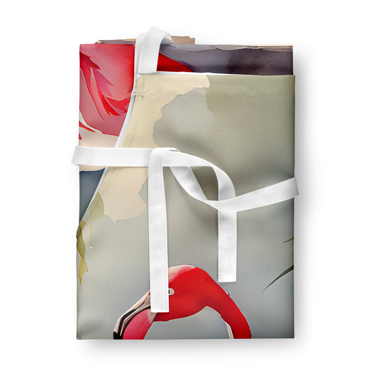 Apron featuring breed specific Flamingo artwork. Elevate your cooking, baking, and grilling experiences with our versatile Kitchen or BBQ Apron. This Bib Style apron isn't just limited to culinary activities - it also serves as an excellent baking apron, artist apron, server apron, gardening apron, or even a dog grooming apron. The apron showcases vibrant full-color artwork contributed by one of our talented artists, bringing a dash of style to your daily tasks. With dimensions of approximately 27"W x 30"H, it provides ample coverage to protect your clothing from spills and splashes. Our apron is meticulously crafted from 100% Ultra Spun Polyester, known for its durability and lightweight nature. The apron comes with white tie straps, ensuring a comfortable and adjustable fit for all. It's a perfect choice for kitchen apron enthusiasts, whether you are a woman or a man. Designed for easy maintenance, this apron is fully machine washable. The quick-drying polyester material actively reduces staining, keeping your apron looking fresh and new for longer. Our beautifully designed apron isn't just a functional kitchen accessory - it's a fashion statement in the culinary world!