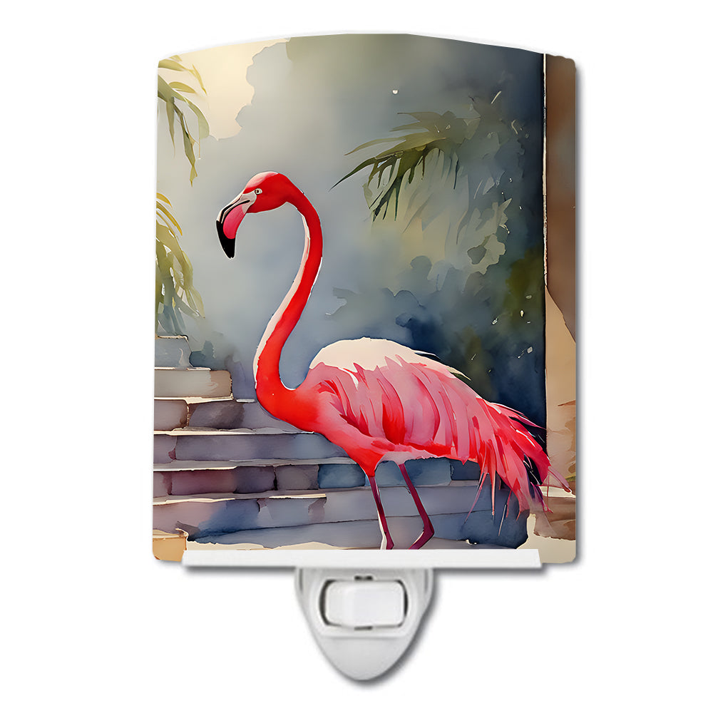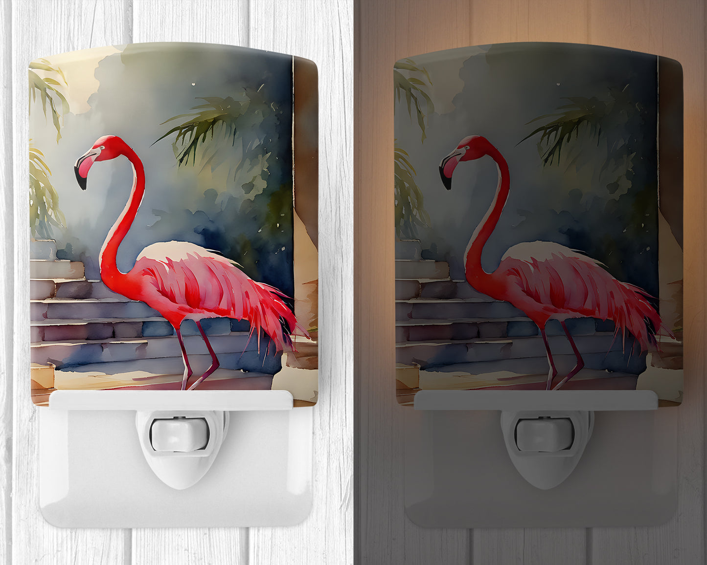 Ceramic Night Light featuring breed specific Flamingo artwork. Introduce a splash of artistic flair and subtle illumination to your space with the Decorative Ceramic Night Light from Caroline's Treasures. Perfect for any room, this night light seamlessly blends functionality with an aesthetic appeal, offering a stylish solution to brighten up dark corners of your home or office. Boasting a six-inch high by four-inch wide ceramic tile at the front, it showcases vivid, full-color artwork from distinguished artists, transforming a simple utility into a vibrant art piece. The artwork is securely encased in a robust metal holder, ensuring durability and longevity. Two screws are provided to firmly affix the tile into the holder. The holder extends three inches deep, housing an included bulb that emits a soft, welcoming glow. This product meets all safety standards, as evidenced by its UL approval. Proudly made in the United States from imported components, this Decorative Ceramic Night Light is not just a functional device; it's a statement piece that enhances the ambiance of your surroundings.