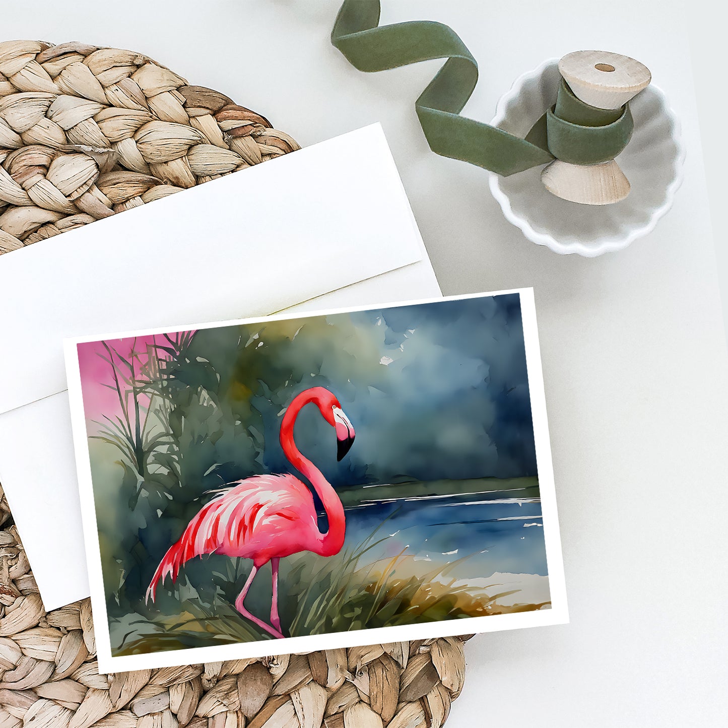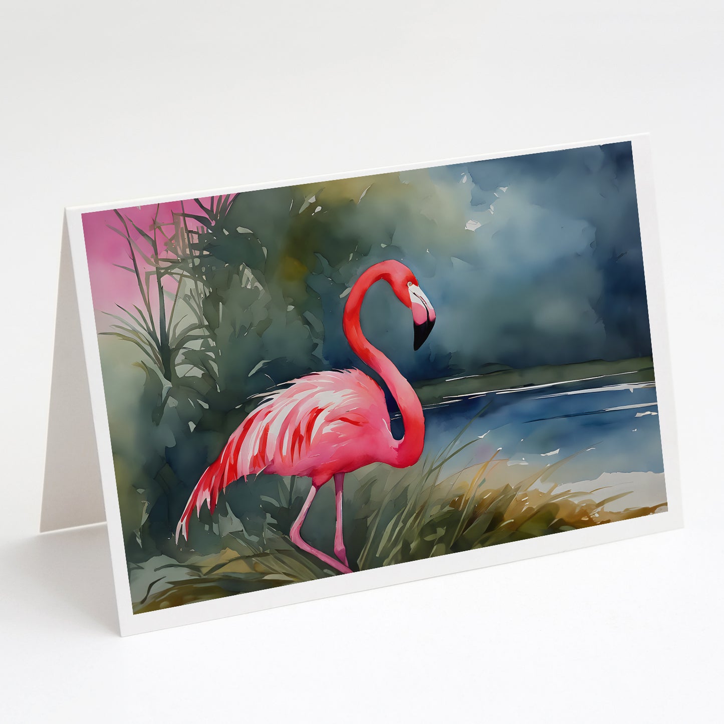 Greeting Cards Pack of 8 featuring breed specific Flamingo artwork. Celebrate special moments with Caroline's Treasures Printed Greeting Card Pack. This pack includes eight beautifully folded 5x7 cards, accompanied by eight matching white envelopes. With blank interiors, these cards provide ample space for your personalized messages and heartfelt holiday greetings. Each card features captivating full-color artwork, meticulously printed in our facility on high-quality 80 lb cover stock or 216 GSM. The super smooth finish of the white cards enhances the visual impact of the artwork, creating a truly stunning presentation. Designed by our talented in-house artists or licensed artists, the artwork on these cards showcases their creativity and attention to detail. From vibrant illustrations to captivating designs, each card tells its own unique story. Whether it's for birthdays, anniversaries, holidays, or any special occasion, Caroline's Treasures Greeting Card Pack is the perfect way to convey your heartfelt sentiments. Share joy, love, and warm wishes with these exquisite cards and make every moment unforgettable.