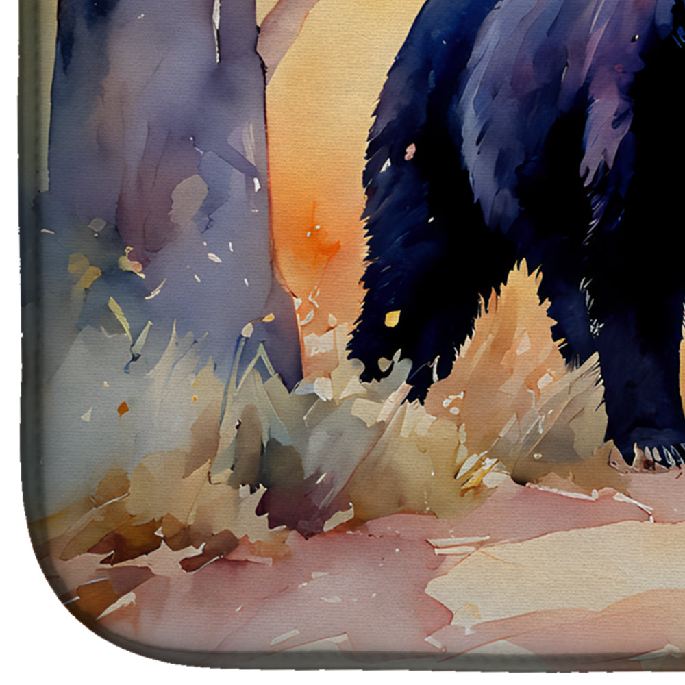 Dish Drying Mat featuring breed specific American Black Bear artwork. Say goodbye to messy countertops and soggy dish towels with our innovative dish drying mat. Our high-quality dish drying pad is designed to keep your countertops dry while offering a stylish and efficient solution. Whether you're air drying dishes, glasses, stemware, silverware, pots, pans, bottles, or even fruits and vegetables, our dish mat is the perfect choice. The 14 inches x 22 inches size fits most counters and dish drying racks, and the non-slip design ensures stability. Made with water-absorbent polyester and a polyurethane foam insert, our dish drying mat is not only functional but also durable. It's machine washable and printed in the USA for long-lasting use. The beautiful artwork adds flair to your kitchen decor, making it a perfect housewarming gift or present for any occasion. Upgrade your kitchen experience with our absorbent and versatile dish drying mat.
