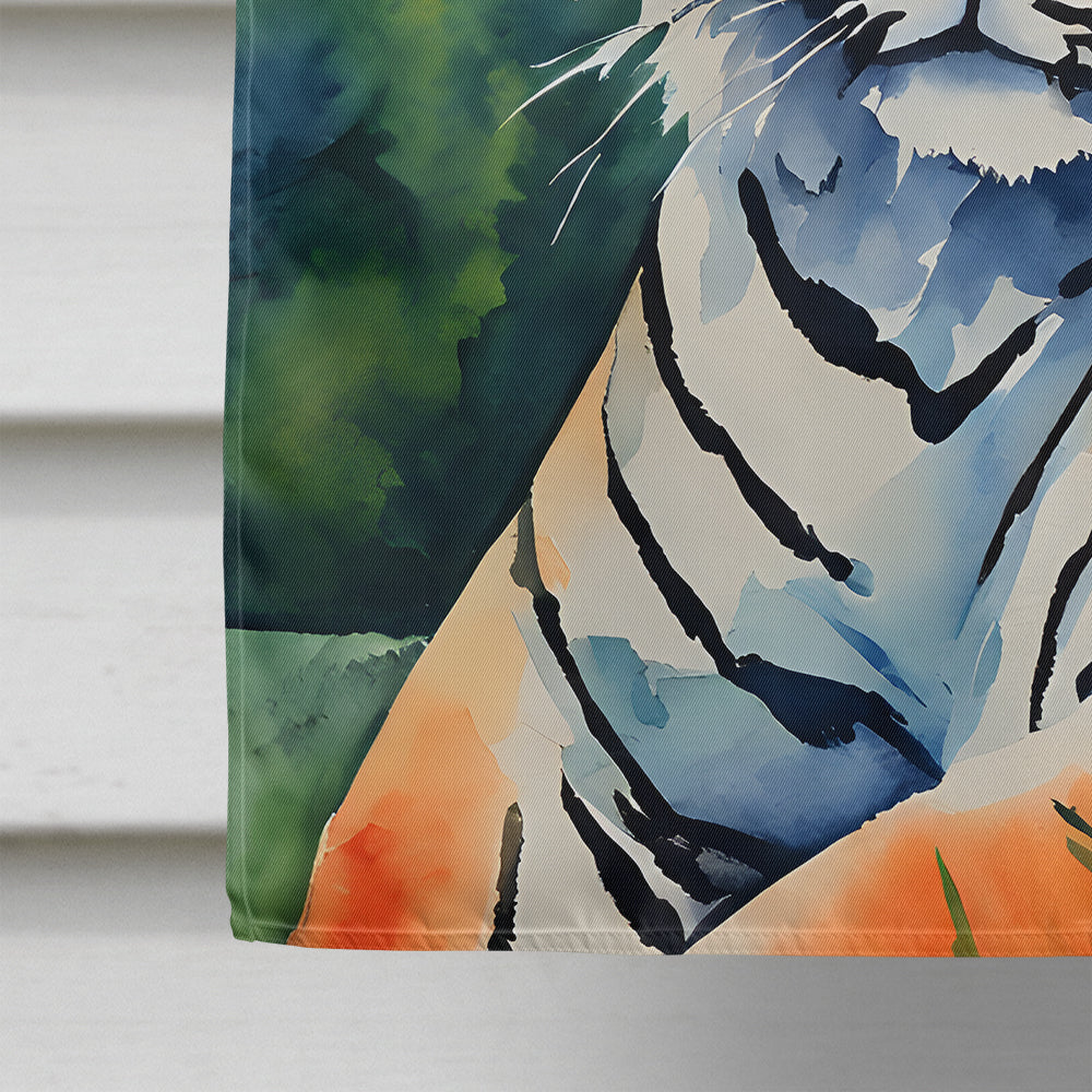 House Flag featuring breed specific Bengal Tiger artwork. Presenting our Heavy Duty Polyester House Size Decorative Sleeve Pole Flag, a vibrant addition to enhance the aesthetic appeal of your home. This large decorative flag, measuring approximately 28 x 40 inches, offers ample coverage and visibility. Each flag is meticulously sewn and made individually, ensuring a unique piece that may slightly vary in size. It's a sleeve pole flag, designed to fit a standard decorative flag pole effortlessly. Please note that the flag pole and bracket are not included and should be purchased separately. What sets our flag apart is its dual-sided print. The design is mirrored on both sides of the fabric, allowing for uniform visibility regardless of the angle. Printed in full color, our flag showcases vibrant hues that truly stand out. To ensure lasting vibrancy and durability, the dyes are heat-set into the fabric. This ensures your flag remains bright and captivating through various weather conditions. Elevate the look of your home with our Heavy Duty Polyester House Size Decorative Sleeve Pole Flag!