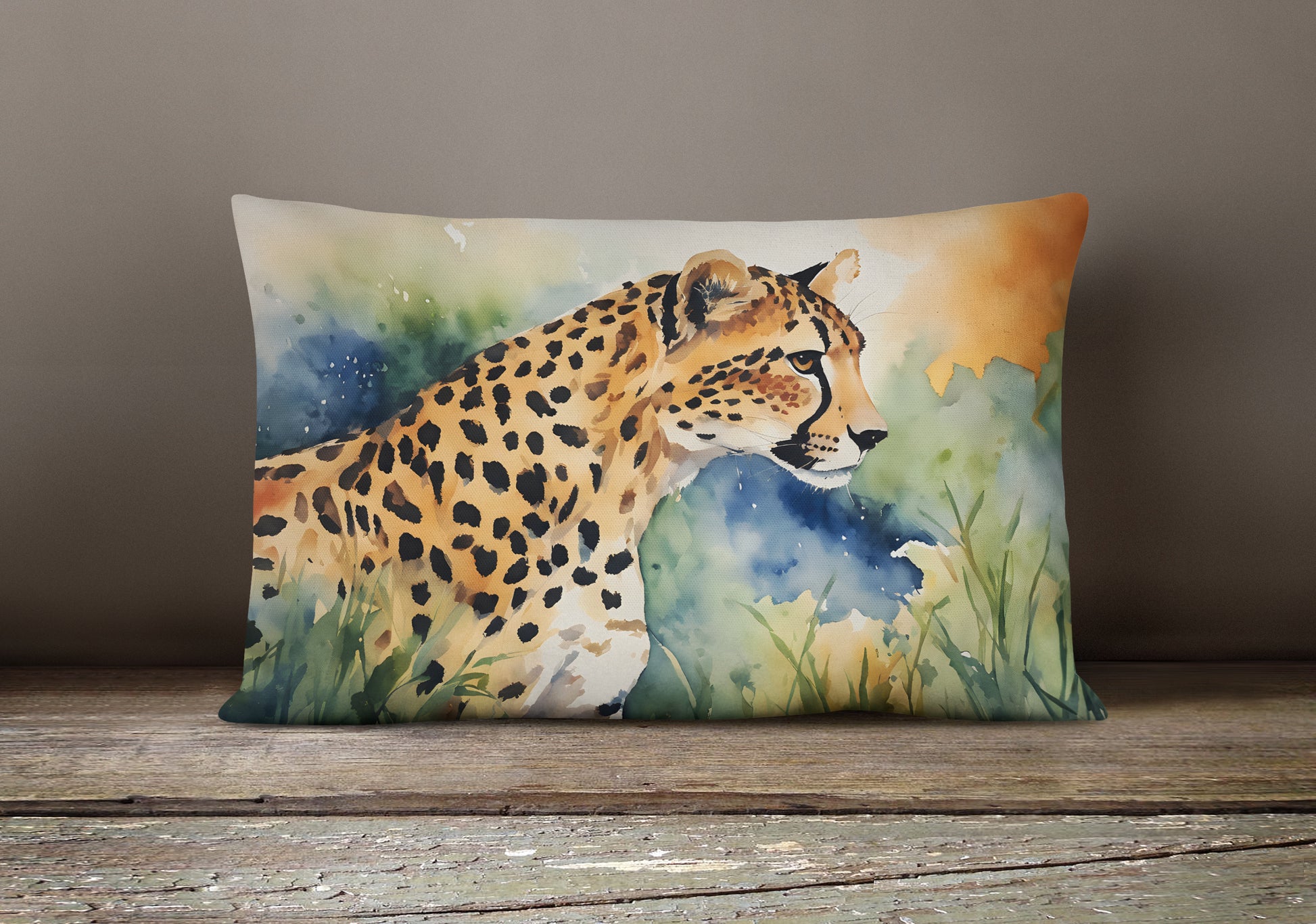 Throw Pillow featuring breed specific Cheetah artwork. Embrace the fusion of comfort and style with Caroline's Treasures Fabric Decorative Pillow. This 12x16 inch outdoor pillow is designed to complement your patio furniture, adding a splash of color and artistry to your outdoor setting. Constructed with a 100% Polyester Fabric pillow sham filled with a plush pillow form, this cushion is as comfortable as it is durable. Our outdoor pillow utilizes a novel fabric, meticulously woven for enhanced water resistance. This soft canvas material is equally suited for your indoor couch as well as outdoor settings such as the patio, porch, or veranda. To ensure enduring vibrance, we employ colorfast dyes resistant to fading even when subjected to weather elements. The making of this pillow involves the delicate sewing together of three fabric pieces to create a sham, into which a polyester insert is carefully placed. The result is an overstuffed pillow that tenaciously holds its shape. With both the sham and the pillow insert crafted in the United States, these handmade pillows are a testament to superior local craftsmanship. Note that as these pillows are handmade, sizes may slightly vary, enhancing their unique appeal. Enjoy comfort in style with Caroline's Treasures Fabric Decorative Pillow.