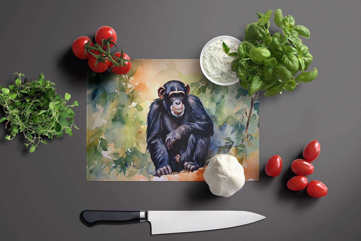 Glass Cutting Board featuring breed specific Chimpanzee artwork. Introduce your kitchen to the vibrant, large Decorative Glass Cutting Board from Caroline's Treasures. Crafted from resilient tempered glass, this board is not only a utilitarian necessity but also a colorful art piece. With its generous dimensions of 15 inches in height and 12 inches in length, it offers ample space for all your cutting needs. Every piece showcases captivating artwork from distinguished artists, bringing an aesthetic edge to your kitchen. Beyond its attractive design, this cutting board ensures your countertop stays pristine and unscathed, owing to its heat-resistant properties. Engineered with user convenience in mind, it features non-skid feet for stability, and rounded corners for additional safety. Its robust construction renders it virtually unbreakable, guaranteeing longevity. The board comes with protective feet bumpers, maintaining its position during use. This product is recommended to be hand washed only. Proudly printed and assembled in the United States, this cutting board exemplifies superior craftsmanship. With Caroline's Treasures' Decorative Glass Cutting Board, you're investing in a blend of functionality and artistic flair.