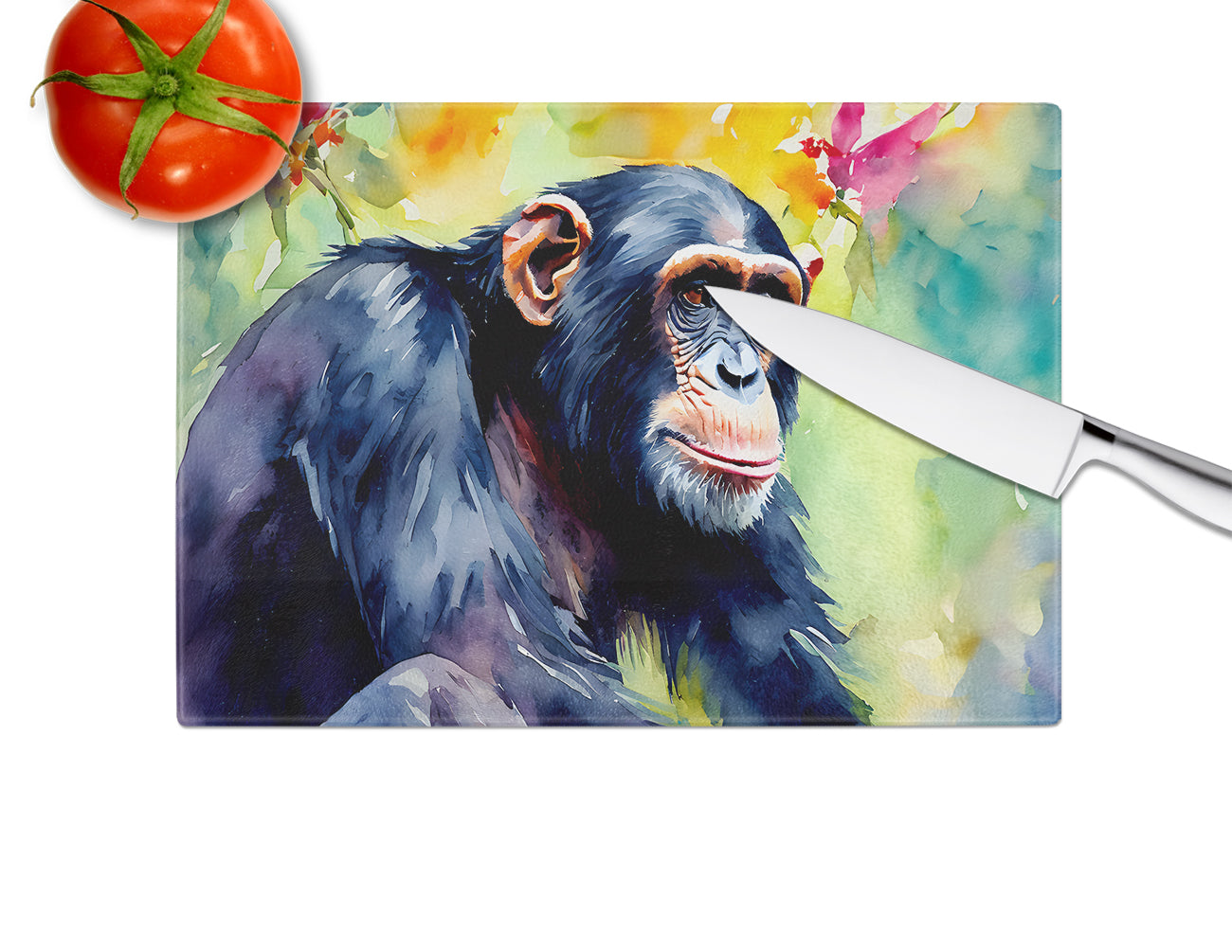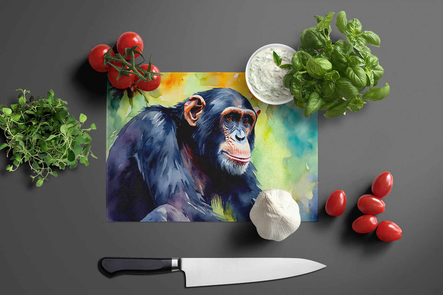 Glass Cutting Board featuring breed specific Chimpanzee artwork. Introduce your kitchen to the vibrant, large Decorative Glass Cutting Board from Caroline's Treasures. Crafted from resilient tempered glass, this board is not only a utilitarian necessity but also a colorful art piece. With its generous dimensions of 15 inches in height and 12 inches in length, it offers ample space for all your cutting needs. Every piece showcases captivating artwork from distinguished artists, bringing an aesthetic edge to your kitchen. Beyond its attractive design, this cutting board ensures your countertop stays pristine and unscathed, owing to its heat-resistant properties. Engineered with user convenience in mind, it features non-skid feet for stability, and rounded corners for additional safety. Its robust construction renders it virtually unbreakable, guaranteeing longevity. The board comes with protective feet bumpers, maintaining its position during use. This product is recommended to be hand washed only. Proudly printed and assembled in the United States, this cutting board exemplifies superior craftsmanship. With Caroline's Treasures' Decorative Glass Cutting Board, you're investing in a blend of functionality and artistic flair.