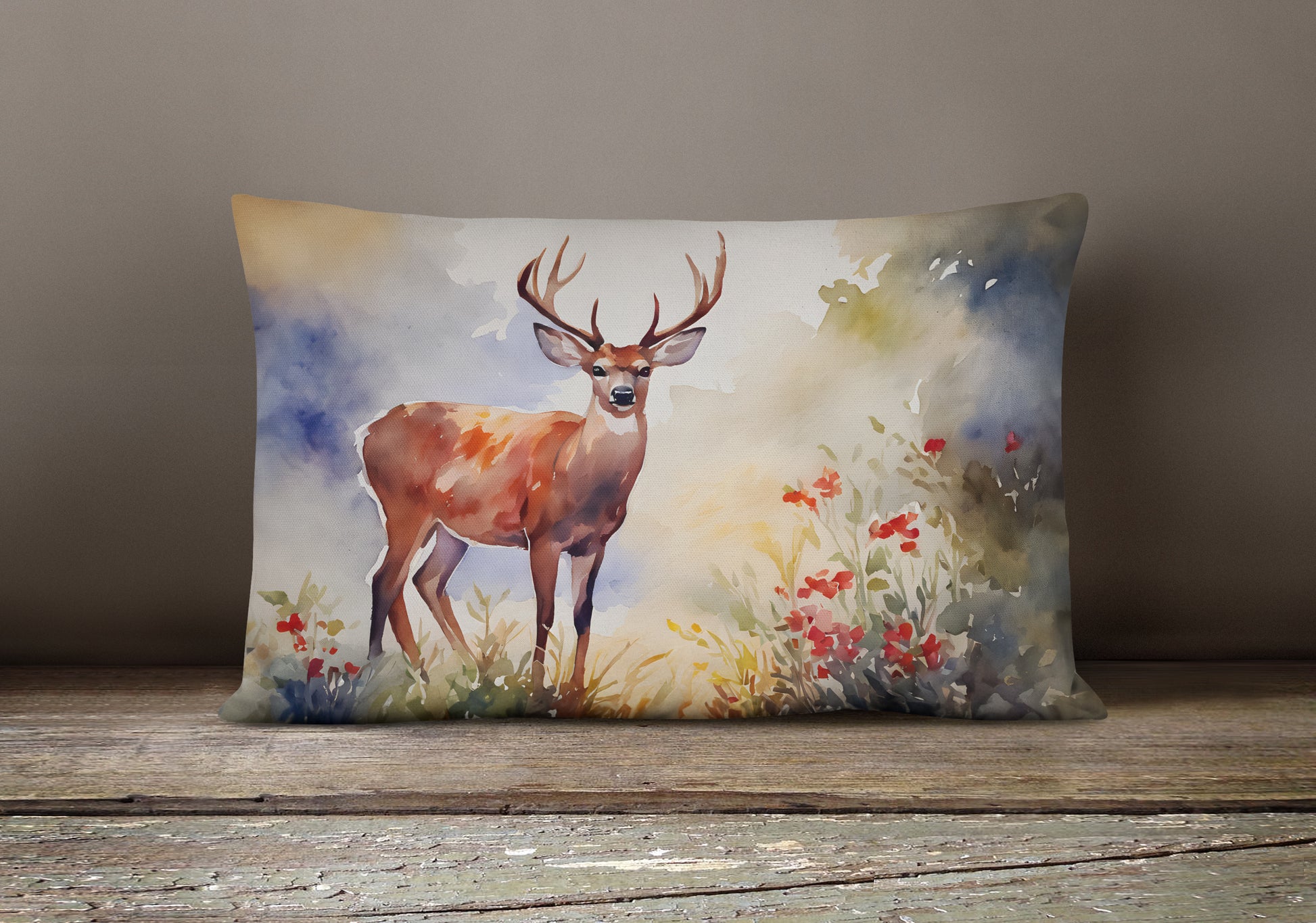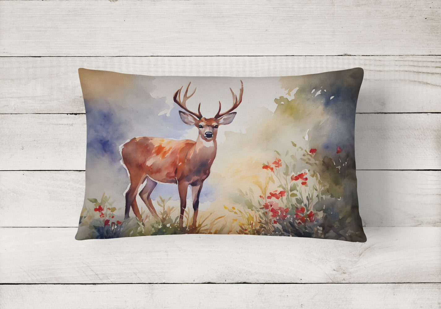 Throw Pillow featuring breed specific Deer artwork. Embrace the fusion of comfort and style with Caroline's Treasures Fabric Decorative Pillow. This 12x16 inch outdoor pillow is designed to complement your patio furniture, adding a splash of color and artistry to your outdoor setting. Constructed with a 100% Polyester Fabric pillow sham filled with a plush pillow form, this cushion is as comfortable as it is durable. Our outdoor pillow utilizes a novel fabric, meticulously woven for enhanced water resistance. This soft canvas material is equally suited for your indoor couch as well as outdoor settings such as the patio, porch, or veranda. To ensure enduring vibrance, we employ colorfast dyes resistant to fading even when subjected to weather elements. The making of this pillow involves the delicate sewing together of three fabric pieces to create a sham, into which a polyester insert is carefully placed. The result is an overstuffed pillow that tenaciously holds its shape. With both the sham and the pillow insert crafted in the United States, these handmade pillows are a testament to superior local craftsmanship. Note that as these pillows are handmade, sizes may slightly vary, enhancing their unique appeal. Enjoy comfort in style with Caroline's Treasures Fabric Decorative Pillow.