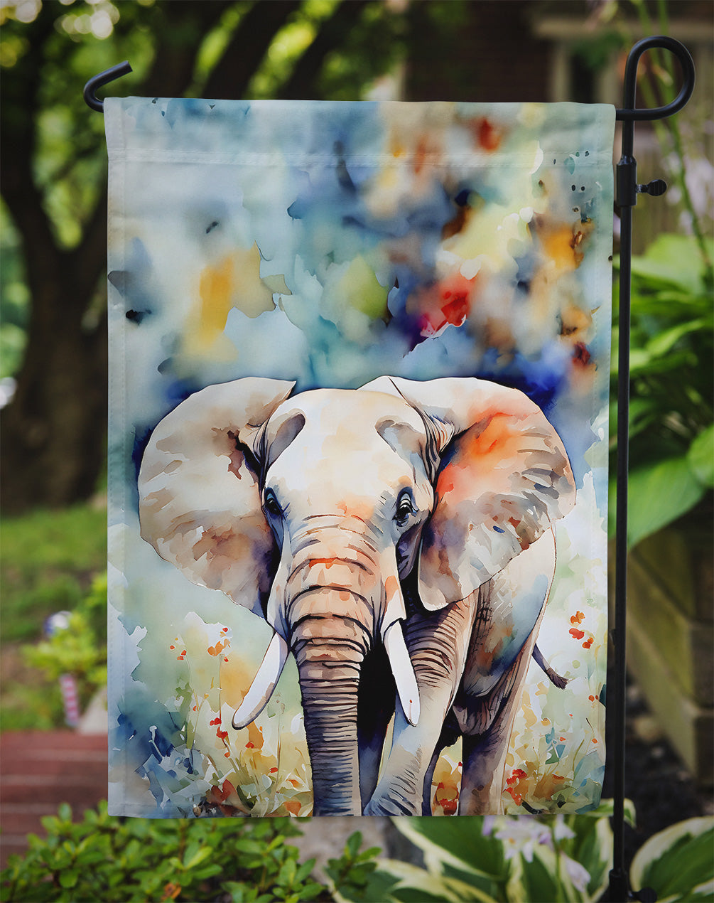 Garden Flag featuring breed specific Elephant artwork. Enhance the beauty of your garden, patio, or yard with Caroline's Treasures Decorative Garden Flag, proudly made in the USA. Crafted from two pieces of thick, double-sided polyester fabric, this 2-ply garden flag is designed to withstand various weather conditions, making it water-resistant and weatherproof. Featuring correctly readable words on both sides, this garden flag offers a delightful visual experience from any angle. With its heavier weight, it stands out among other garden flags, ensuring stability and durability even in wind, rain, and snow. Measuring approximately 11 1/4 inches by 15 1/2 inches, this flag allows you to personalize your outdoor decor. It comes with a 1 1/2-inch sleeve sewn in, allowing easy attachment to any standard garden flag stand or garden size porch hanger (sold separately). Make a statement in your outdoor space with Caroline's Treasures Decorative Garden Flag, a vibrant and high-quality flag that adds color and personality to your surroundings. Proudly made in the USA, it's a symbol of quality craftsmanship and attention to detail.