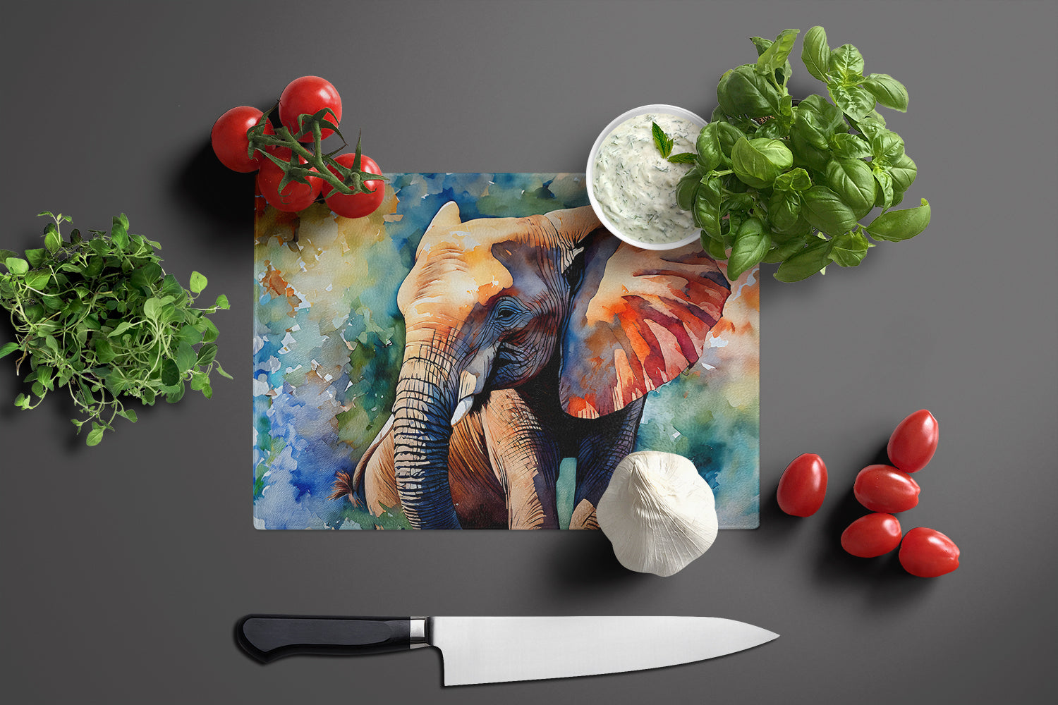 Glass Cutting Board featuring breed specific Elephant artwork. Introduce your kitchen to the vibrant, large Decorative Glass Cutting Board from Caroline's Treasures. Crafted from resilient tempered glass, this board is not only a utilitarian necessity but also a colorful art piece. With its generous dimensions of 15 inches in height and 12 inches in length, it offers ample space for all your cutting needs. Every piece showcases captivating artwork from distinguished artists, bringing an aesthetic edge to your kitchen. Beyond its attractive design, this cutting board ensures your countertop stays pristine and unscathed, owing to its heat-resistant properties. Engineered with user convenience in mind, it features non-skid feet for stability, and rounded corners for additional safety. Its robust construction renders it virtually unbreakable, guaranteeing longevity. The board comes with protective feet bumpers, maintaining its position during use. This product is recommended to be hand washed only. Proudly printed and assembled in the United States, this cutting board exemplifies superior craftsmanship. With Caroline's Treasures' Decorative Glass Cutting Board, you're investing in a blend of functionality and artistic flair.