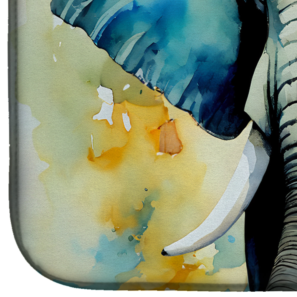 Dish Drying Mat featuring breed specific Elephant artwork. Say goodbye to messy countertops and soggy dish towels with our innovative dish drying mat. Our high-quality dish drying pad is designed to keep your countertops dry while offering a stylish and efficient solution. Whether you're air drying dishes, glasses, stemware, silverware, pots, pans, bottles, or even fruits and vegetables, our dish mat is the perfect choice. The 14 inches x 22 inches size fits most counters and dish drying racks, and the non-slip design ensures stability. Made with water-absorbent polyester and a polyurethane foam insert, our dish drying mat is not only functional but also durable. It's machine washable and printed in the USA for long-lasting use. The beautiful artwork adds flair to your kitchen decor, making it a perfect housewarming gift or present for any occasion. Upgrade your kitchen experience with our absorbent and versatile dish drying mat.
