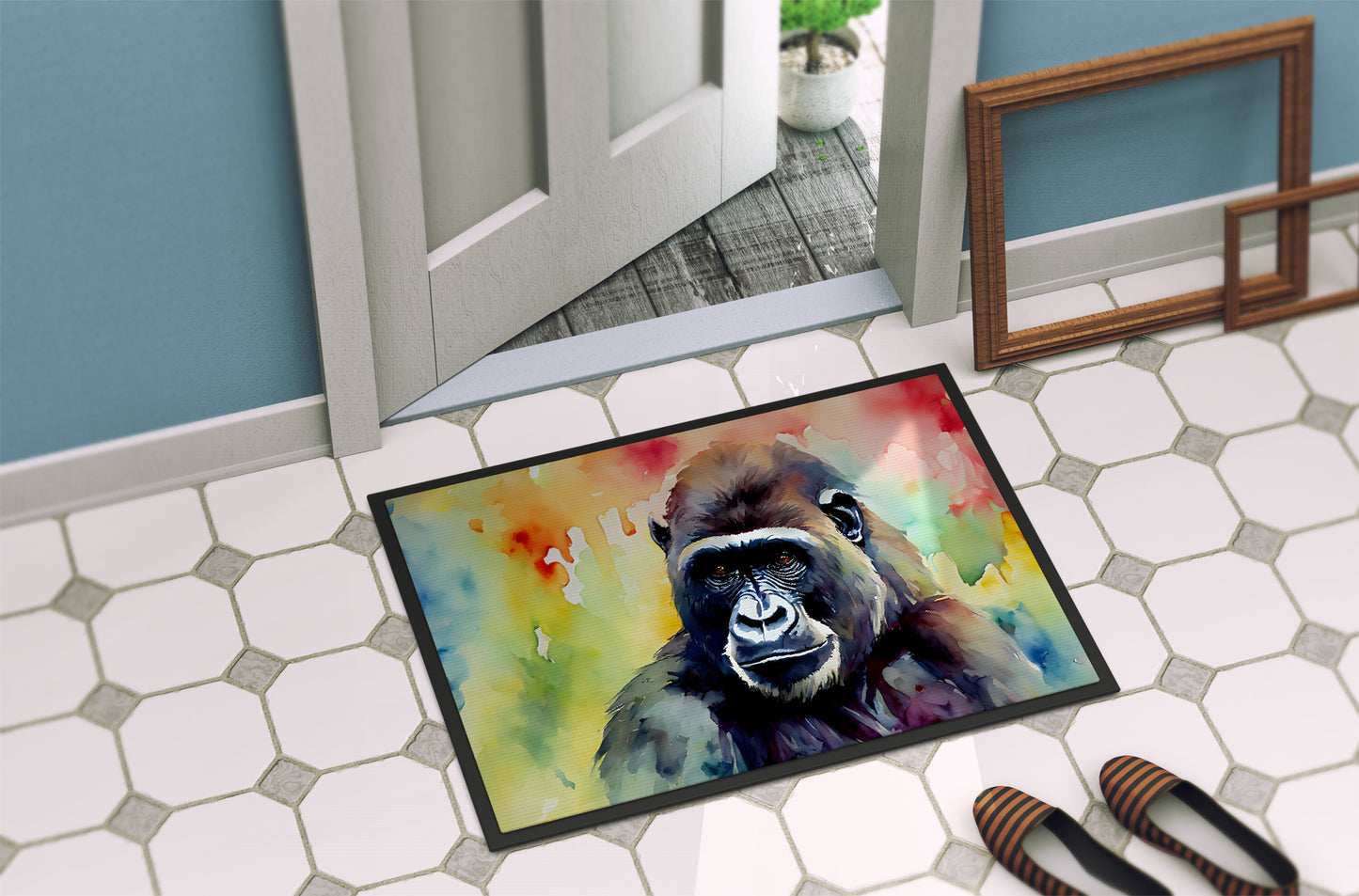 Doormat featuring breed specific Gorilla artwork. Welcome your guests in style with our Artwork Door Mat, designed to withstand almost any weather condition. This mat, measuring approximately 18 by 27 inches, is held together by durable black binding tape. Its top layer, composed of polyester felt, is dyed with the eye-catching image you see on the mat. A few layers below provide the mat with stability, while its rubber bottom is stamped to help prevent slipping and ensures safety. Our mat works wonderfully as both an indoor or outdoor door mat. For cleaning, simply hose it off with water or use a power washer - no need for any cleaner that produces suds. Avoid scrubbing with a brush, instead, opt for the vacuum on floor setting. Designed manufactured and printed in the USA, this mat is a perfect addition to your porch, outdoor kitchen, entryway, or any indoor space. Its unique design makes it a charming decorative rug that greets your guests and adds a stylish touch to your home decor.