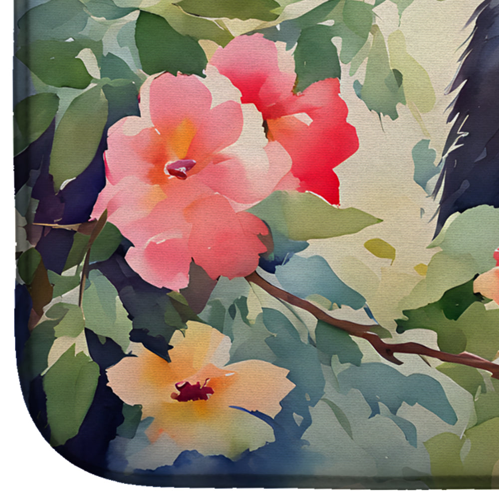 Dish Drying Mat featuring breed specific Gorilla artwork. Say goodbye to messy countertops and soggy dish towels with our innovative dish drying mat. Our high-quality dish drying pad is designed to keep your countertops dry while offering a stylish and efficient solution. Whether you're air drying dishes, glasses, stemware, silverware, pots, pans, bottles, or even fruits and vegetables, our dish mat is the perfect choice. The 14 inches x 22 inches size fits most counters and dish drying racks, and the non-slip design ensures stability. Made with water-absorbent polyester and a polyurethane foam insert, our dish drying mat is not only functional but also durable. It's machine washable and printed in the USA for long-lasting use. The beautiful artwork adds flair to your kitchen decor, making it a perfect housewarming gift or present for any occasion. Upgrade your kitchen experience with our absorbent and versatile dish drying mat.