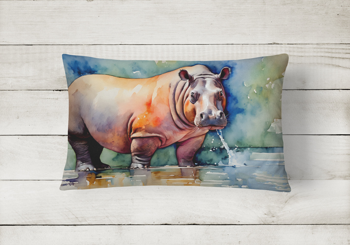 Throw Pillow featuring breed specific Hippopotamus artwork. Embrace the fusion of comfort and style with Caroline's Treasures Fabric Decorative Pillow. This 12x16 inch outdoor pillow is designed to complement your patio furniture, adding a splash of color and artistry to your outdoor setting. Constructed with a 100% Polyester Fabric pillow sham filled with a plush pillow form, this cushion is as comfortable as it is durable. Our outdoor pillow utilizes a novel fabric, meticulously woven for enhanced water resistance. This soft canvas material is equally suited for your indoor couch as well as outdoor settings such as the patio, porch, or veranda. To ensure enduring vibrance, we employ colorfast dyes resistant to fading even when subjected to weather elements. The making of this pillow involves the delicate sewing together of three fabric pieces to create a sham, into which a polyester insert is carefully placed. The result is an overstuffed pillow that tenaciously holds its shape. With both the sham and the pillow insert crafted in the United States, these handmade pillows are a testament to superior local craftsmanship. Note that as these pillows are handmade, sizes may slightly vary, enhancing their unique appeal. Enjoy comfort in style with Caroline's Treasures Fabric Decorative Pillow.