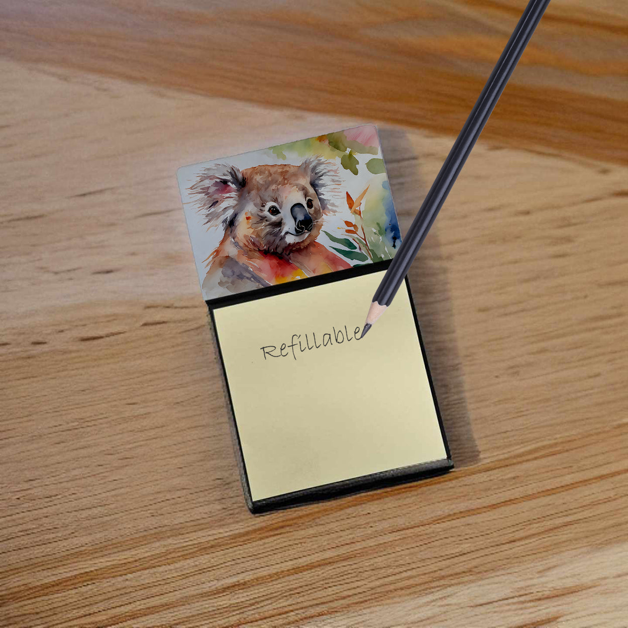 Sticky Note Holder featuring breed specific Koala artwork. Add a touch of creativity and flair to your desk with the Decorative Sticky Note Holder from Caroline's Treasures. This uniquely designed sticky note dispenser will not only keep your notes in one place but also add an artistic element to your workspace. The top of the holder features beautiful artwork that is sure to catch the eye. Crafted for convenience, this sticky note holder comes with a small pad of 3-inch x 3-inch sticky notes at the bottom. The holder is designed for easy refilling; simply remove the last sheet of a new sticky note pad and stick it onto the board. This feature ensures you will always have sticky notes at your disposal. This Sticky Note Holder makes a perfect gift. Be it for your colleagues at work, your Facebook friends, or even your dog groomer or hairdresser, this versatile product fits the bill. You can use it for making grocery lists, leaving notes for loved ones, or for jotting down important reminders. The bottom board is rigid and can be magnetized by adding a business card size magnet to the back (sold separately). This makes it even more versatile, allowing you to place it on a refrigerator or any other magnetic surface. With this Sticky Note Holder, you're not only organizing your notes, but also personalizing your space.