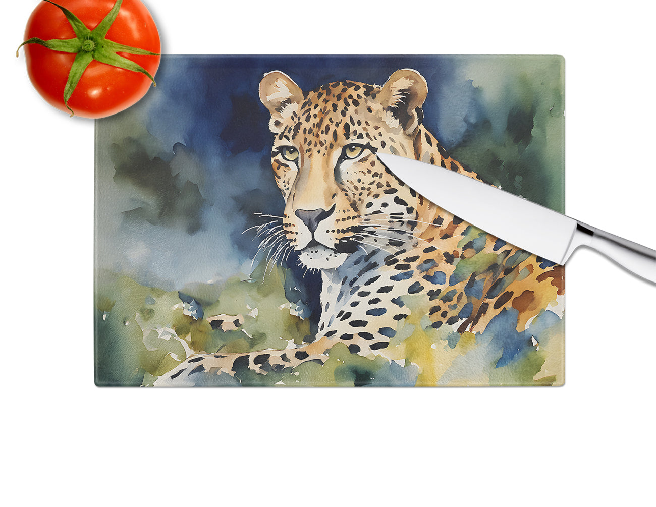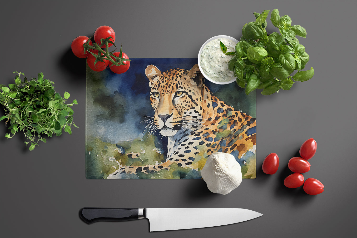 Glass Cutting Board featuring breed specific Leopard artwork. Introduce your kitchen to the vibrant, large Decorative Glass Cutting Board from Caroline's Treasures. Crafted from resilient tempered glass, this board is not only a utilitarian necessity but also a colorful art piece. With its generous dimensions of 15 inches in height and 12 inches in length, it offers ample space for all your cutting needs. Every piece showcases captivating artwork from distinguished artists, bringing an aesthetic edge to your kitchen. Beyond its attractive design, this cutting board ensures your countertop stays pristine and unscathed, owing to its heat-resistant properties. Engineered with user convenience in mind, it features non-skid feet for stability, and rounded corners for additional safety. Its robust construction renders it virtually unbreakable, guaranteeing longevity. The board comes with protective feet bumpers, maintaining its position during use. This product is recommended to be hand washed only. Proudly printed and assembled in the United States, this cutting board exemplifies superior craftsmanship. With Caroline's Treasures' Decorative Glass Cutting Board, you're investing in a blend of functionality and artistic flair.