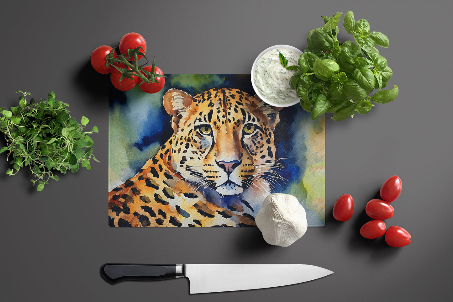 Glass Cutting Board featuring breed specific Leopard artwork. Introduce your kitchen to the vibrant, large Decorative Glass Cutting Board from Caroline's Treasures. Crafted from resilient tempered glass, this board is not only a utilitarian necessity but also a colorful art piece. With its generous dimensions of 15 inches in height and 12 inches in length, it offers ample space for all your cutting needs. Every piece showcases captivating artwork from distinguished artists, bringing an aesthetic edge to your kitchen. Beyond its attractive design, this cutting board ensures your countertop stays pristine and unscathed, owing to its heat-resistant properties. Engineered with user convenience in mind, it features non-skid feet for stability, and rounded corners for additional safety. Its robust construction renders it virtually unbreakable, guaranteeing longevity. The board comes with protective feet bumpers, maintaining its position during use. This product is recommended to be hand washed only. Proudly printed and assembled in the United States, this cutting board exemplifies superior craftsmanship. With Caroline's Treasures' Decorative Glass Cutting Board, you're investing in a blend of functionality and artistic flair.