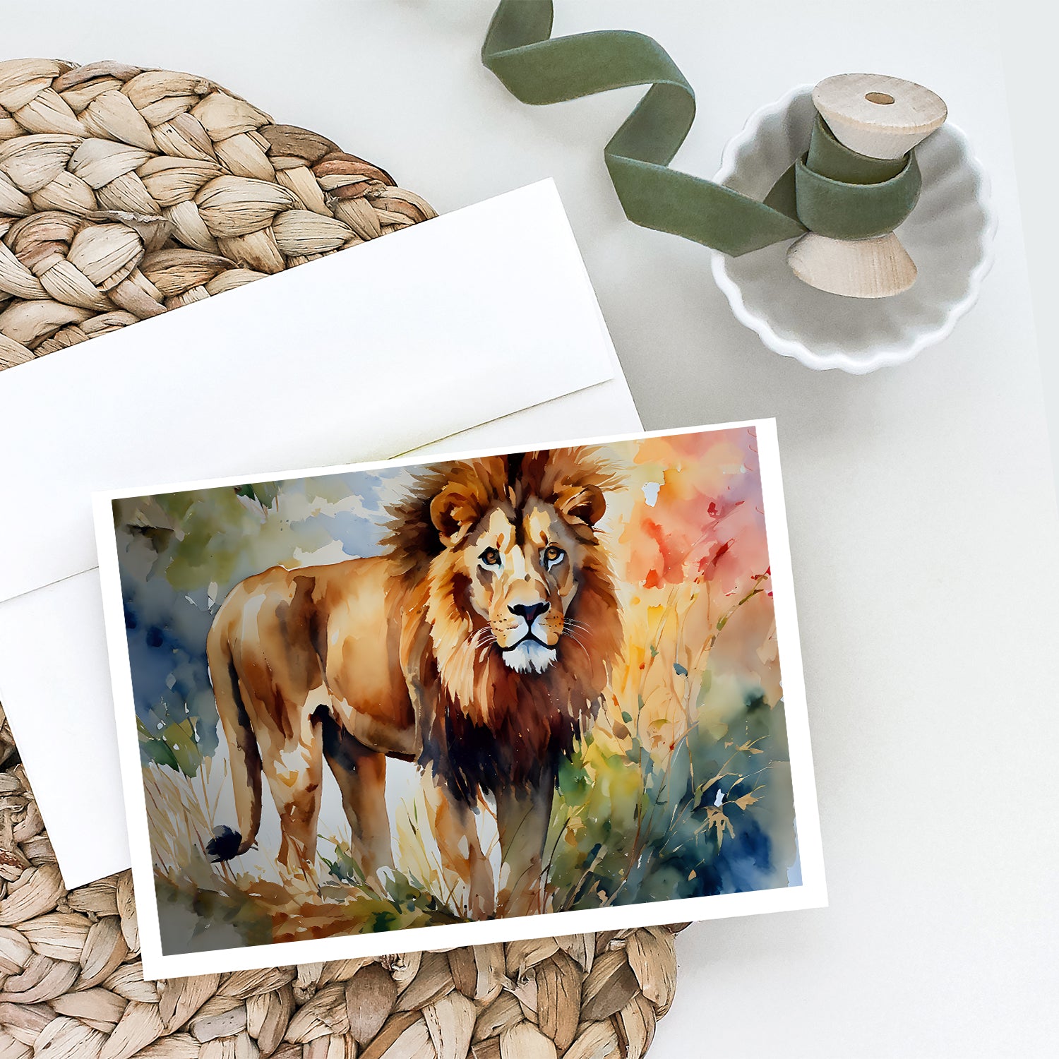 Greeting Cards Pack of 8 featuring breed specific Lion artwork. Celebrate special moments with Caroline's Treasures Printed Greeting Card Pack. This pack includes eight beautifully folded 5x7 cards, accompanied by eight matching white envelopes. With blank interiors, these cards provide ample space for your personalized messages and heartfelt holiday greetings. Each card features captivating full-color artwork, meticulously printed in our facility on high-quality 80 lb cover stock or 216 GSM. The super smooth finish of the white cards enhances the visual impact of the artwork, creating a truly stunning presentation. Designed by our talented in-house artists or licensed artists, the artwork on these cards showcases their creativity and attention to detail. From vibrant illustrations to captivating designs, each card tells its own unique story. Whether it's for birthdays, anniversaries, holidays, or any special occasion, Caroline's Treasures Greeting Card Pack is the perfect way to convey your heartfelt sentiments. Share joy, love, and warm wishes with these exquisite cards and make every moment unforgettable.