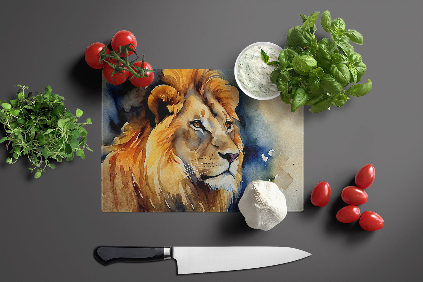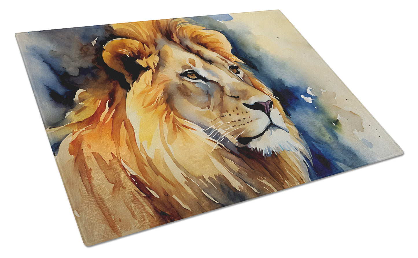 Glass Cutting Board featuring breed specific Lion artwork. Introduce your kitchen to the vibrant, large Decorative Glass Cutting Board from Caroline's Treasures. Crafted from resilient tempered glass, this board is not only a utilitarian necessity but also a colorful art piece. With its generous dimensions of 15 inches in height and 12 inches in length, it offers ample space for all your cutting needs. Every piece showcases captivating artwork from distinguished artists, bringing an aesthetic edge to your kitchen. Beyond its attractive design, this cutting board ensures your countertop stays pristine and unscathed, owing to its heat-resistant properties. Engineered with user convenience in mind, it features non-skid feet for stability, and rounded corners for additional safety. Its robust construction renders it virtually unbreakable, guaranteeing longevity. The board comes with protective feet bumpers, maintaining its position during use. This product is recommended to be hand washed only. Proudly printed and assembled in the United States, this cutting board exemplifies superior craftsmanship. With Caroline's Treasures' Decorative Glass Cutting Board, you're investing in a blend of functionality and artistic flair.