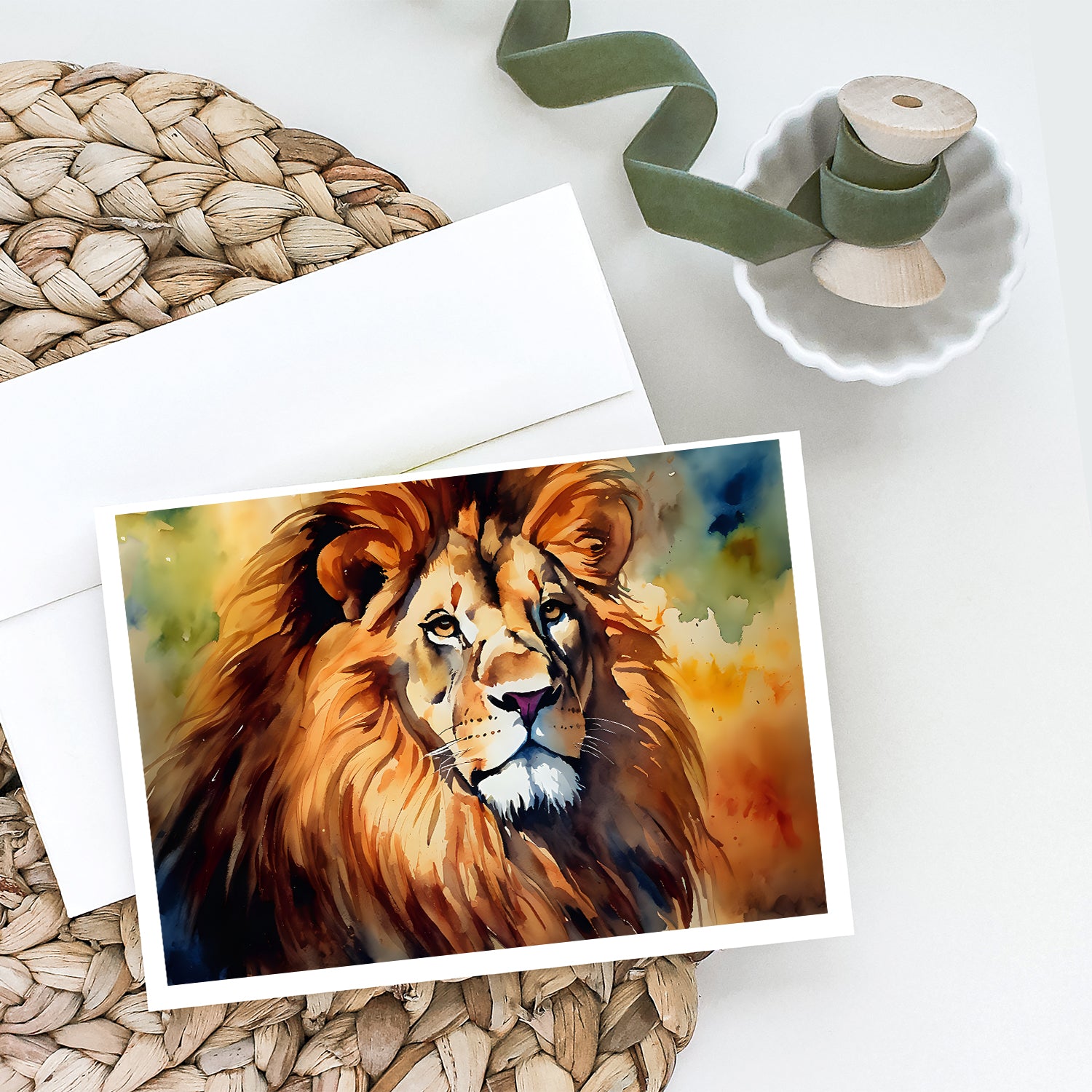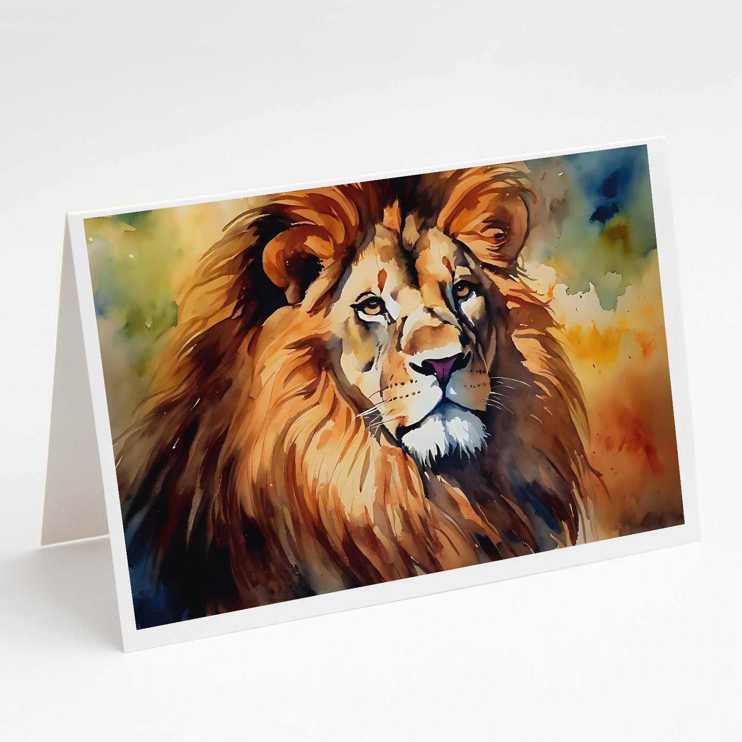 Greeting Cards Pack of 8 featuring breed specific Lion artwork. Celebrate special moments with Caroline's Treasures Printed Greeting Card Pack. This pack includes eight beautifully folded 5x7 cards, accompanied by eight matching white envelopes. With blank interiors, these cards provide ample space for your personalized messages and heartfelt holiday greetings. Each card features captivating full-color artwork, meticulously printed in our facility on high-quality 80 lb cover stock or 216 GSM. The super smooth finish of the white cards enhances the visual impact of the artwork, creating a truly stunning presentation. Designed by our talented in-house artists or licensed artists, the artwork on these cards showcases their creativity and attention to detail. From vibrant illustrations to captivating designs, each card tells its own unique story. Whether it's for birthdays, anniversaries, holidays, or any special occasion, Caroline's Treasures Greeting Card Pack is the perfect way to convey your heartfelt sentiments. Share joy, love, and warm wishes with these exquisite cards and make every moment unforgettable.