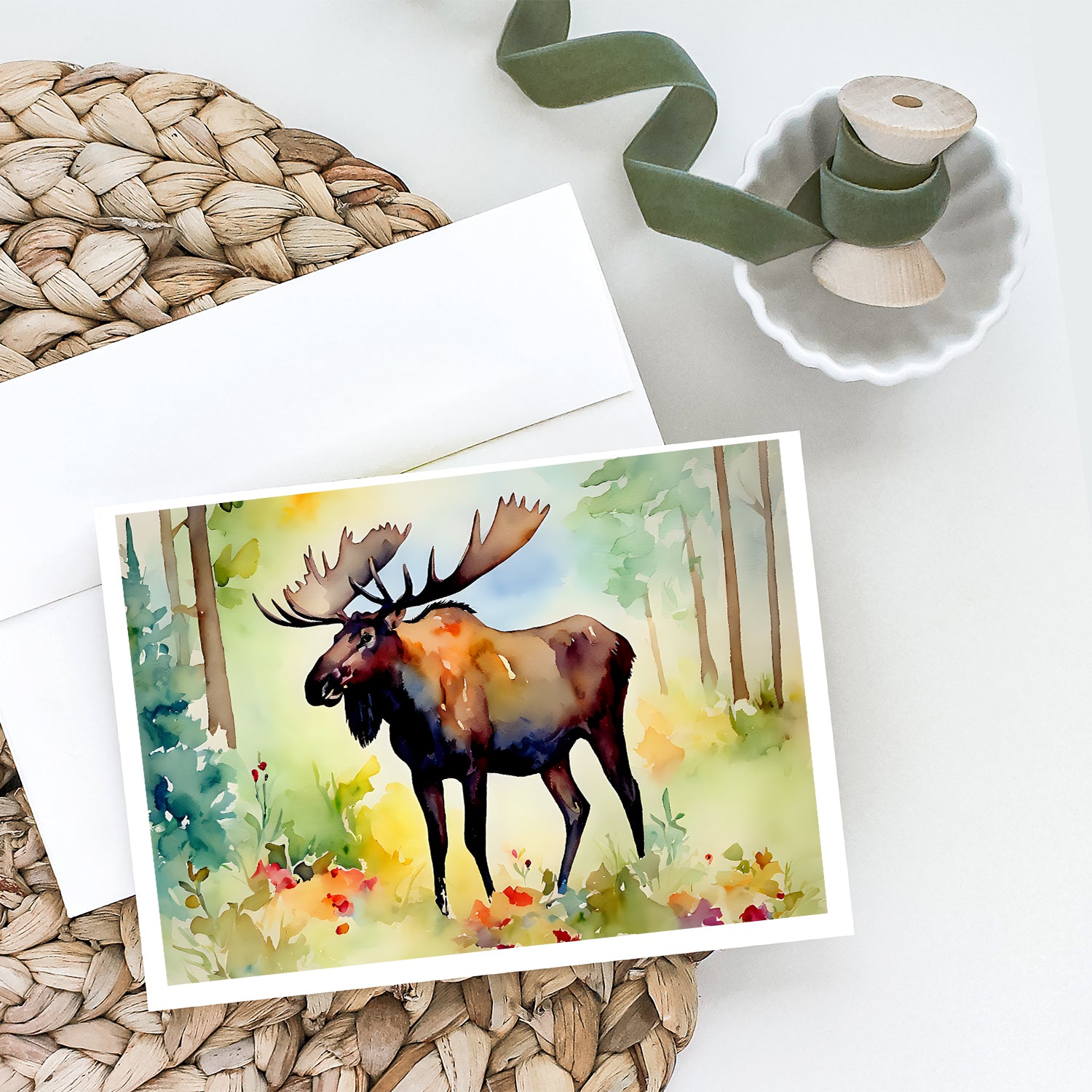 Greeting Cards Pack of 8 featuring breed specific Moose artwork. Celebrate special moments with Caroline's Treasures Printed Greeting Card Pack. This pack includes eight beautifully folded 5x7 cards, accompanied by eight matching white envelopes. With blank interiors, these cards provide ample space for your personalized messages and heartfelt holiday greetings. Each card features captivating full-color artwork, meticulously printed in our facility on high-quality 80 lb cover stock or 216 GSM. The super smooth finish of the white cards enhances the visual impact of the artwork, creating a truly stunning presentation. Designed by our talented in-house artists or licensed artists, the artwork on these cards showcases their creativity and attention to detail. From vibrant illustrations to captivating designs, each card tells its own unique story. Whether it's for birthdays, anniversaries, holidays, or any special occasion, Caroline's Treasures Greeting Card Pack is the perfect way to convey your heartfelt sentiments. Share joy, love, and warm wishes with these exquisite cards and make every moment unforgettable.