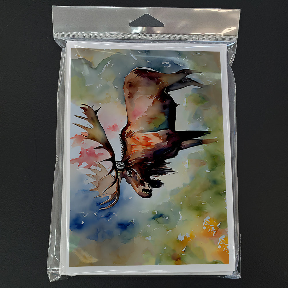 Greeting Cards Pack of 8 featuring breed specific Moose artwork. Celebrate special moments with Caroline's Treasures Printed Greeting Card Pack. This pack includes eight beautifully folded 5x7 cards, accompanied by eight matching white envelopes. With blank interiors, these cards provide ample space for your personalized messages and heartfelt holiday greetings. Each card features captivating full-color artwork, meticulously printed in our facility on high-quality 80 lb cover stock or 216 GSM. The super smooth finish of the white cards enhances the visual impact of the artwork, creating a truly stunning presentation. Designed by our talented in-house artists or licensed artists, the artwork on these cards showcases their creativity and attention to detail. From vibrant illustrations to captivating designs, each card tells its own unique story. Whether it's for birthdays, anniversaries, holidays, or any special occasion, Caroline's Treasures Greeting Card Pack is the perfect way to convey your heartfelt sentiments. Share joy, love, and warm wishes with these exquisite cards and make every moment unforgettable.