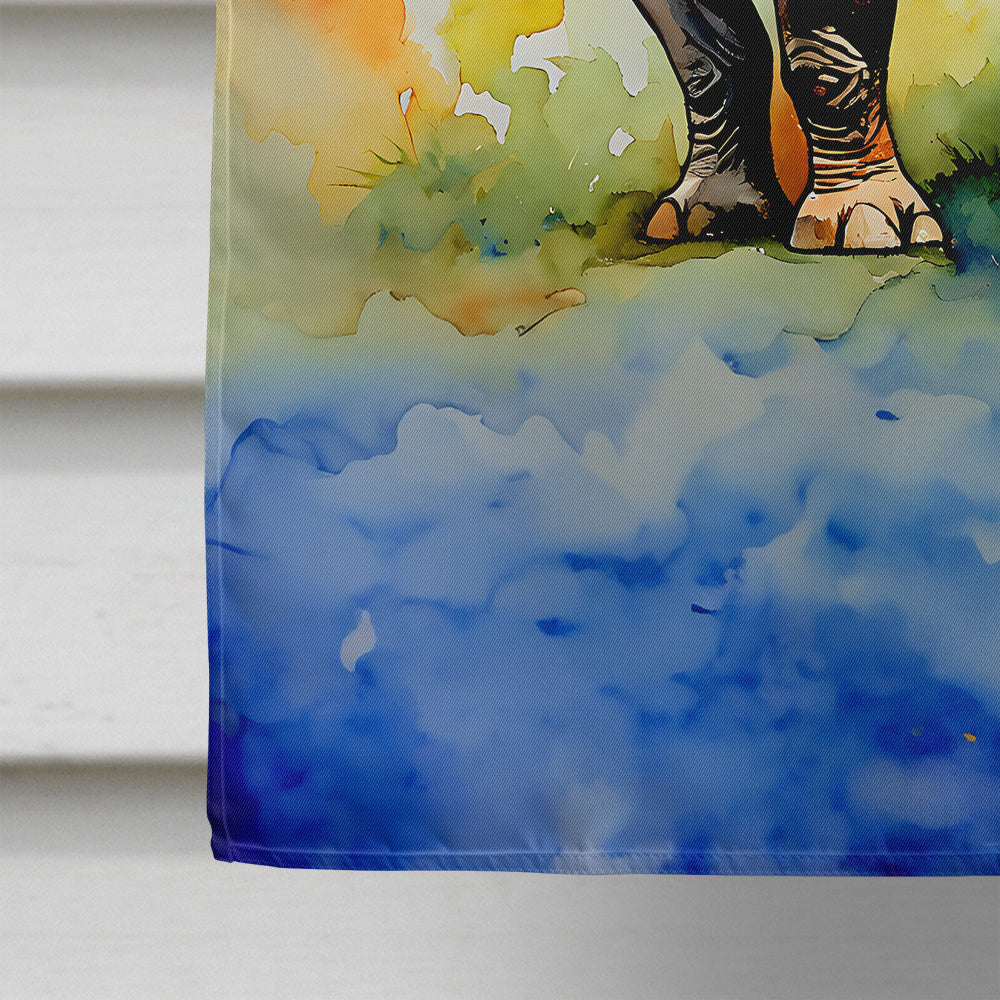 House Flag featuring breed specific Rhinoceros artwork. Presenting our Heavy Duty Polyester House Size Decorative Sleeve Pole Flag, a vibrant addition to enhance the aesthetic appeal of your home. This large decorative flag, measuring approximately 28 x 40 inches, offers ample coverage and visibility. Each flag is meticulously sewn and made individually, ensuring a unique piece that may slightly vary in size. It's a sleeve pole flag, designed to fit a standard decorative flag pole effortlessly. Please note that the flag pole and bracket are not included and should be purchased separately. What sets our flag apart is its dual-sided print. The design is mirrored on both sides of the fabric, allowing for uniform visibility regardless of the angle. Printed in full color, our flag showcases vibrant hues that truly stand out. To ensure lasting vibrancy and durability, the dyes are heat-set into the fabric. This ensures your flag remains bright and captivating through various weather conditions. Elevate the look of your home with our Heavy Duty Polyester House Size Decorative Sleeve Pole Flag!