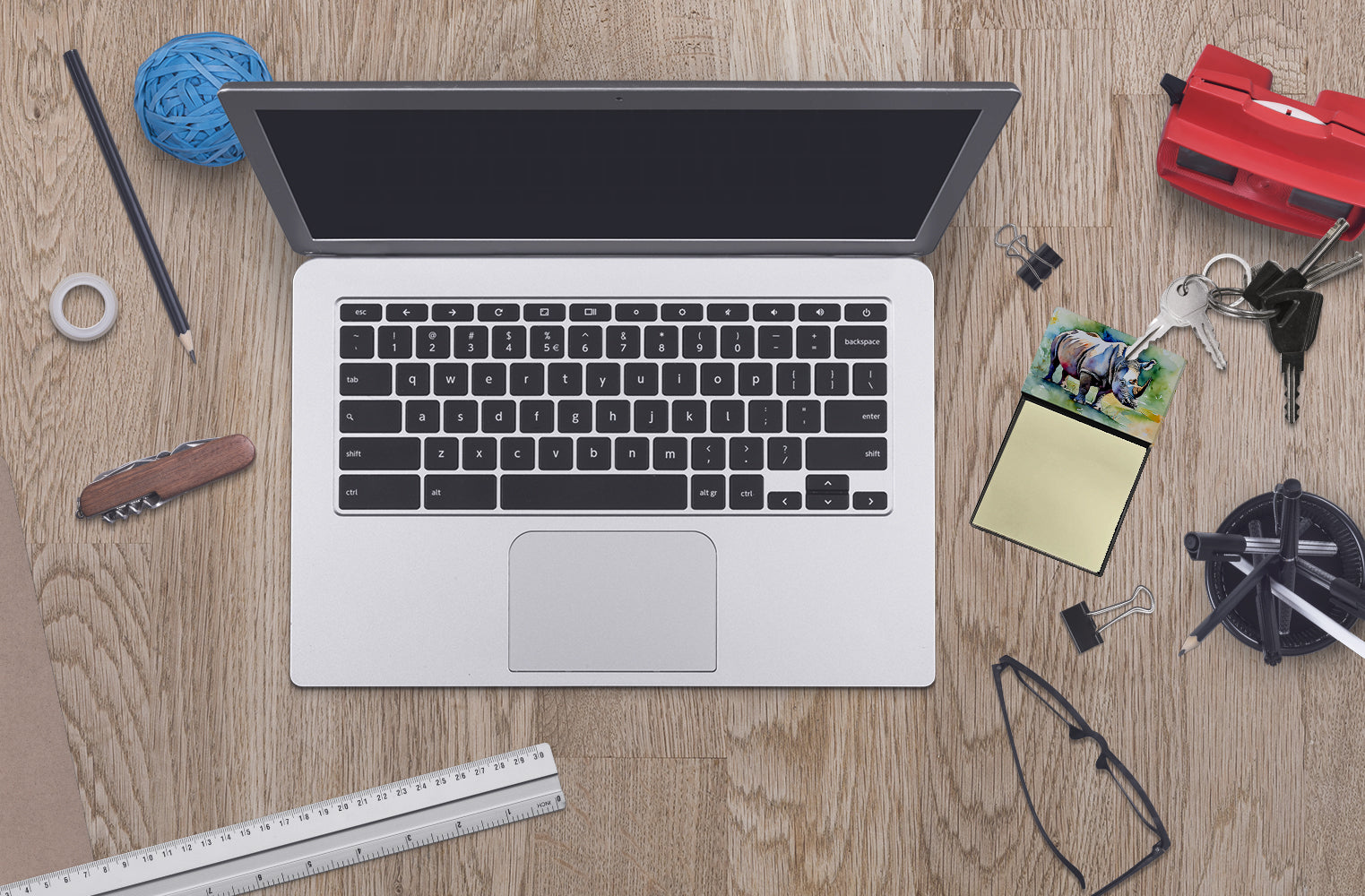 Sticky Note Holder featuring breed specific Rhinoceros artwork. Add a touch of creativity and flair to your desk with the Decorative Sticky Note Holder from Caroline's Treasures. This uniquely designed sticky note dispenser will not only keep your notes in one place but also add an artistic element to your workspace. The top of the holder features beautiful artwork that is sure to catch the eye. Crafted for convenience, this sticky note holder comes with a small pad of 3-inch x 3-inch sticky notes at the bottom. The holder is designed for easy refilling; simply remove the last sheet of a new sticky note pad and stick it onto the board. This feature ensures you will always have sticky notes at your disposal. This Sticky Note Holder makes a perfect gift. Be it for your colleagues at work, your Facebook friends, or even your dog groomer or hairdresser, this versatile product fits the bill. You can use it for making grocery lists, leaving notes for loved ones, or for jotting down important reminders. The bottom board is rigid and can be magnetized by adding a business card size magnet to the back (sold separately). This makes it even more versatile, allowing you to place it on a refrigerator or any other magnetic surface. With this Sticky Note Holder, you're not only organizing your notes, but also personalizing your space.