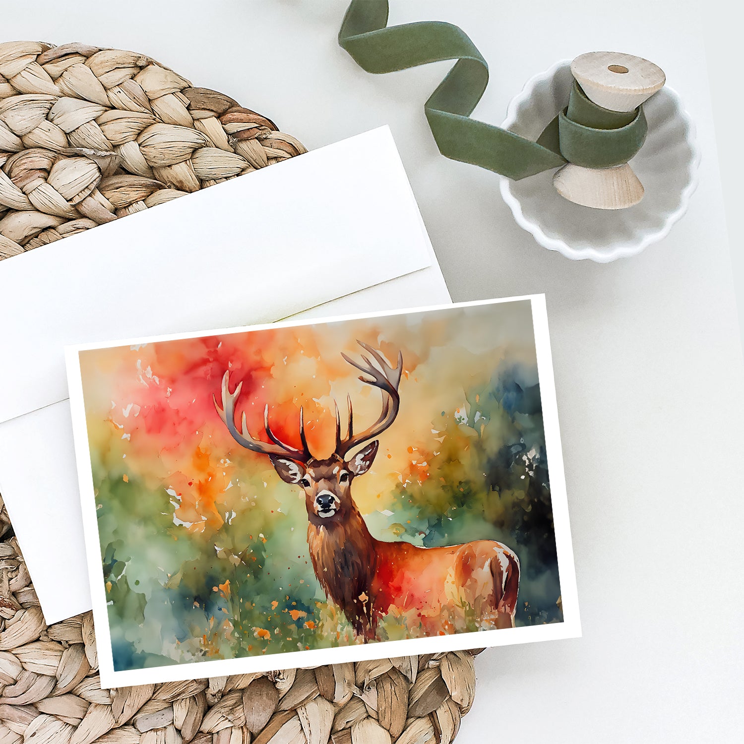 Greeting Cards Pack of 8 featuring breed specific Deer Stag artwork. Celebrate special moments with Caroline's Treasures Printed Greeting Card Pack. This pack includes eight beautifully folded 5x7 cards, accompanied by eight matching white envelopes. With blank interiors, these cards provide ample space for your personalized messages and heartfelt holiday greetings. Each card features captivating full-color artwork, meticulously printed in our facility on high-quality 80 lb cover stock or 216 GSM. The super smooth finish of the white cards enhances the visual impact of the artwork, creating a truly stunning presentation. Designed by our talented in-house artists or licensed artists, the artwork on these cards showcases their creativity and attention to detail. From vibrant illustrations to captivating designs, each card tells its own unique story. Whether it's for birthdays, anniversaries, holidays, or any special occasion, Caroline's Treasures Greeting Card Pack is the perfect way to convey your heartfelt sentiments. Share joy, love, and warm wishes with these exquisite cards and make every moment unforgettable.